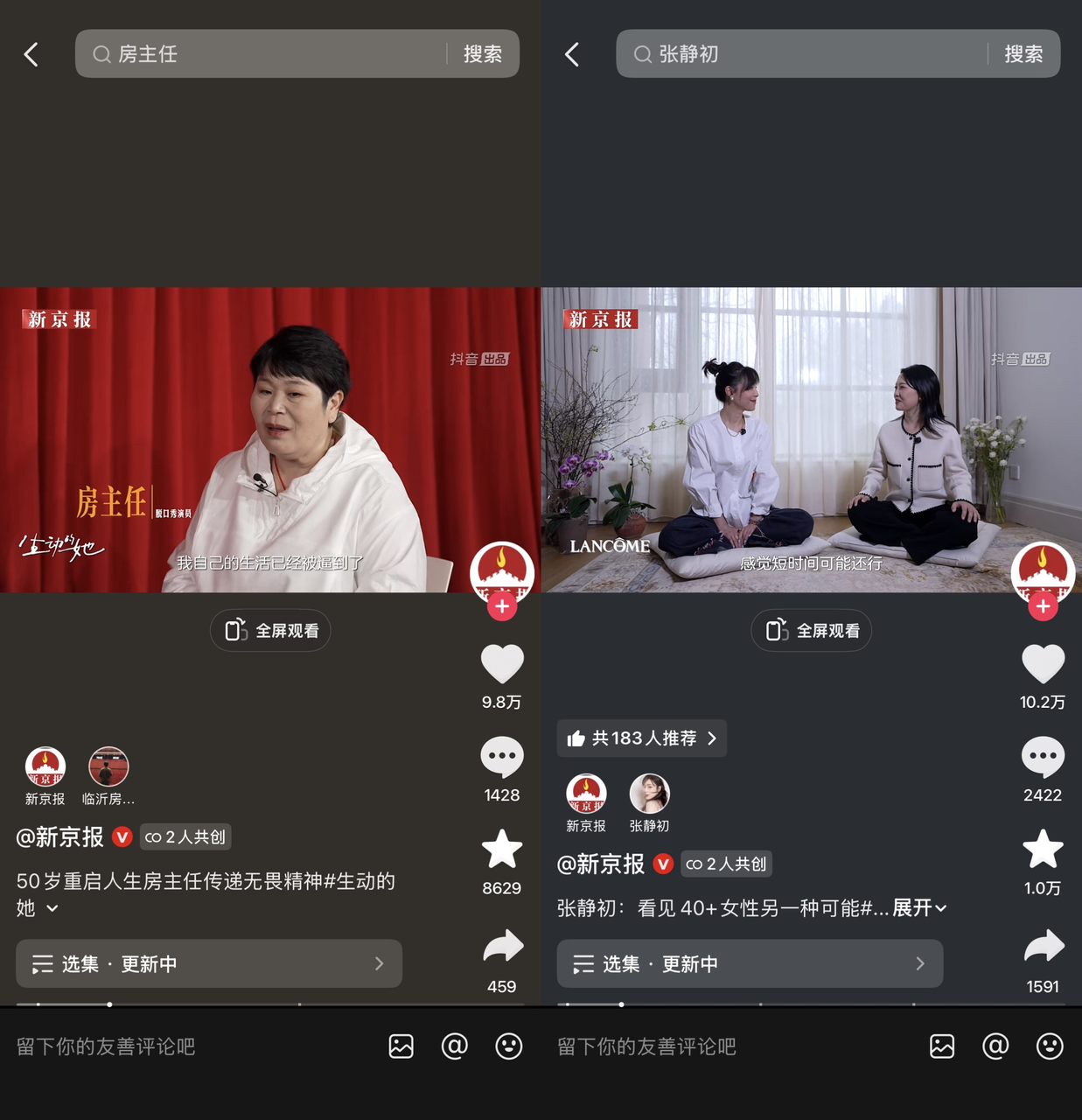 兰蔻深度融入到房主任、张静初的访谈中,以陪伴者的姿态,见证她们的成长蜕变。没有生硬植入,有的只是对女性每一次“向上看”的温柔托举,看见更多不被定义的美,记录更多“更好看”的闪耀瞬间。当用户在评论区写下“我也要成为自己的靠山”时,兰蔻与她们也在人生态度上完成了“向上看,更好看”的同频共振。