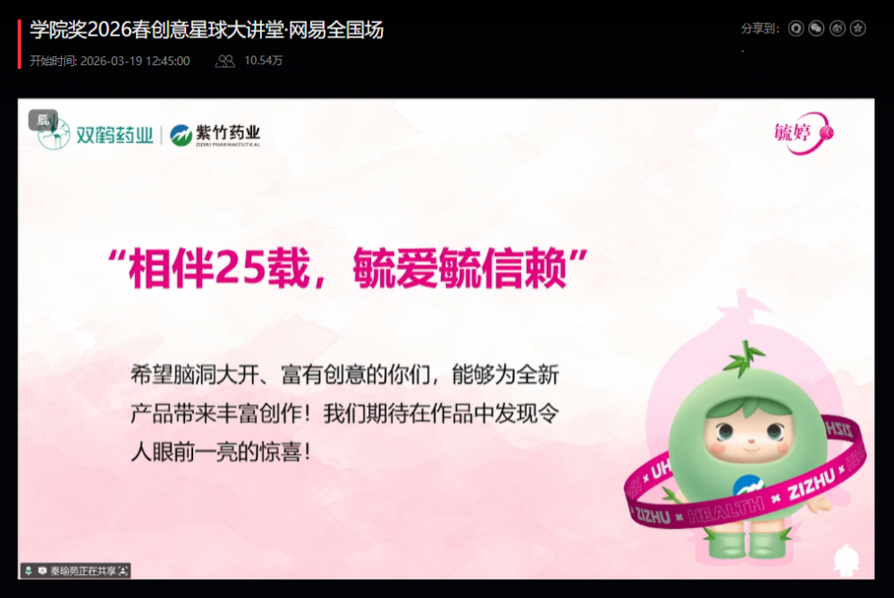 3月19日下午,华润紫竹药业毓婷品牌登陆网易直播间,向全国高校师生分享品牌价值理念,拓宽青春创想边界。