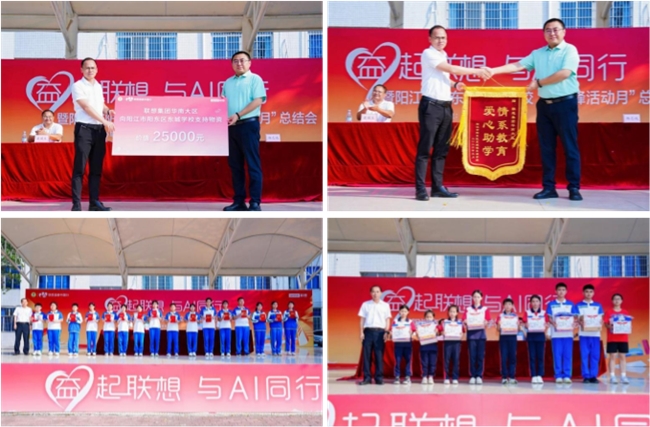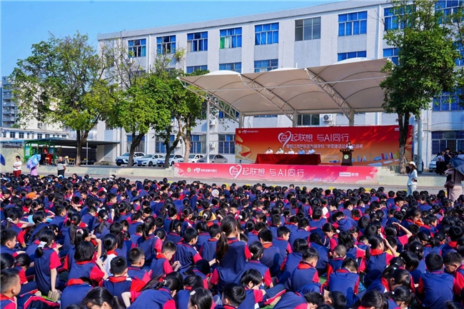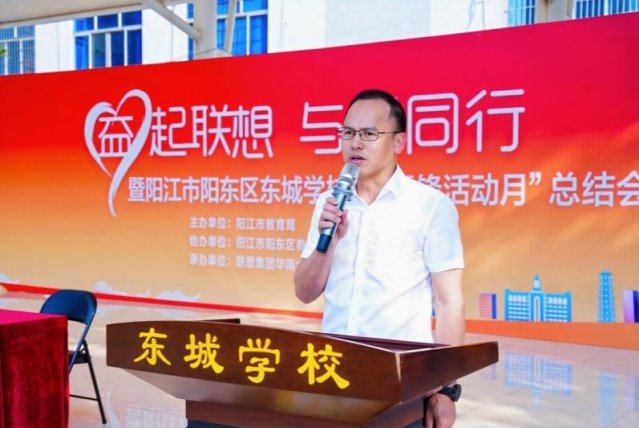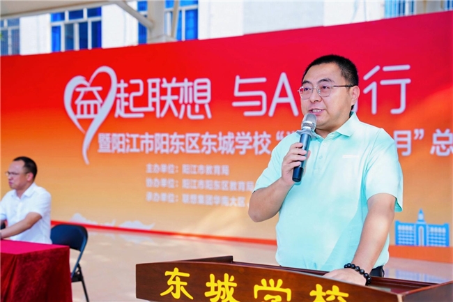 联想华南阳江地区总经理王朝岩在讲话中表示:“雷锋精神的核心是奉献与服务。作为科技企业,我们希望通过这次活动,助力孩子们的全面发展,也希望通过我们的技术,激发同学们的创造力与想象力。也正是我们践行‘科技普惠,让世界充满AI’理念的实际行动。”
