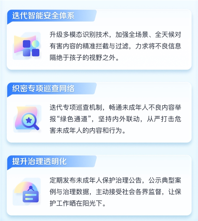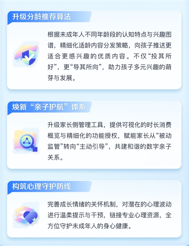 抖音相关负责人表示,2026年,平台将以更严密的安全治理体系筑牢防护之基,以更优质的内容生态点亮成长之光,以更开放的融合机制推动线上线下资源共享,做未成年人成长道路上的“健康守护官”与“成长引路人”,与家长和社会各界一道陪伴孩子成长。