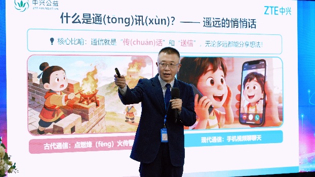 在中兴通讯学院闫林副院长带来的《神奇的5G世界:连接未来的魔法》主题科普课堂上,他用通俗易懂的语言、生动形象的讲解,将抽象的5G通信技术知识转化为鲜活易懂的科普内容,从5G的核心特点到生活中的多元应用,层层拆解、娓娓道来,让学生们轻松理解5G技术的奥秘,感受科技对生活的改变与赋能。
