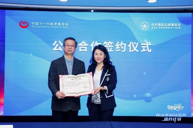 活动现场,中国下一代教育基金会与中兴通讯公益基金会签署公益合作协议,并颁发公益支持单位证书,同时为中兴通讯学院专家闫林颁发 “青少年科技素养提升计划” 专家聘书,为后续开展更多高质量的青少年科技科普研学活动筑牢资源与师资基础。