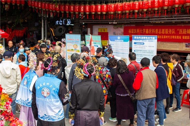 3月20日,福建医科大学第二临床医学院“医路蟳风”惠世科普志愿服务队走进蟳埔社区,开展以“簪花海风润蟳埔,医心惠世践初心”为主题的志愿服务活动。此次活动旨在将医学专业优势与在地文化特色深度融合,在渔村街巷中践行医者初心,在守护居民健康的同时,探索“医学+人文”的志愿服务新路径。