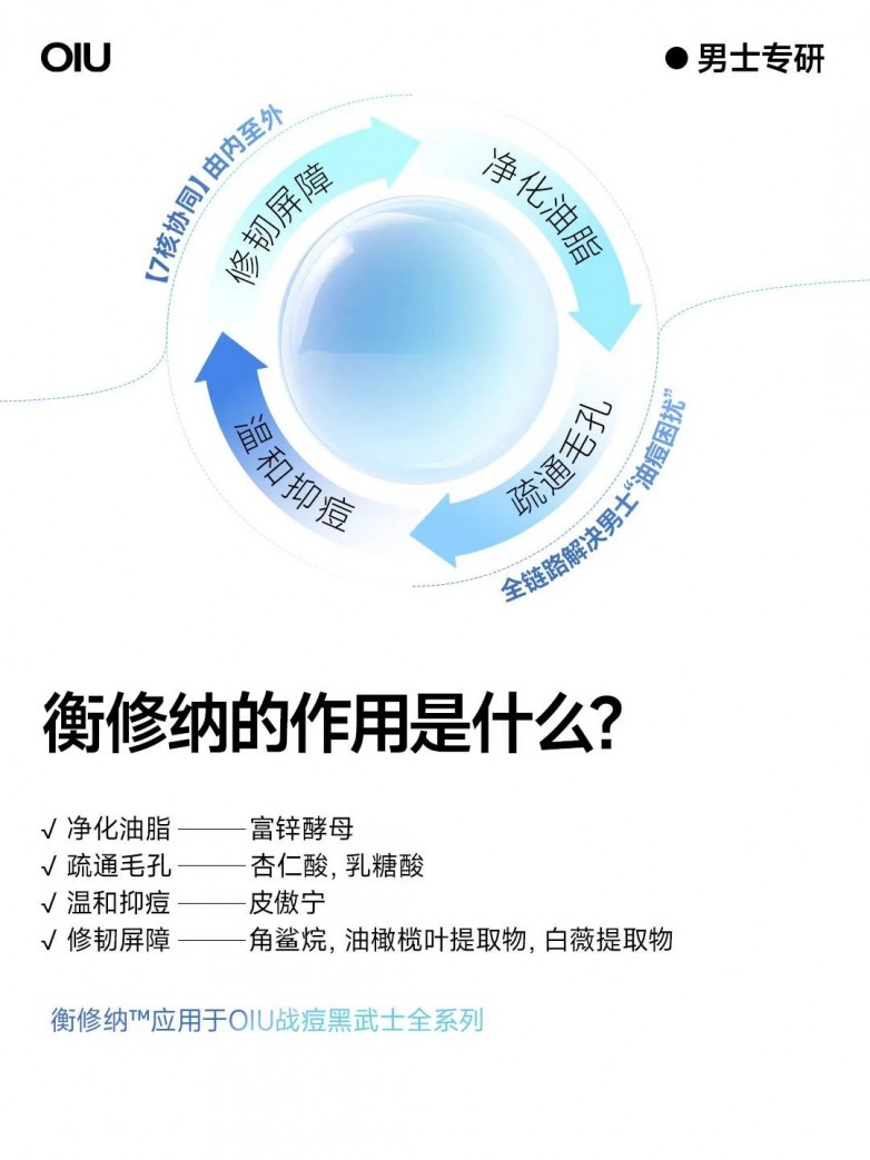 要打破这样的春敏循环,核心在于需要从单纯的“控油”跃升为“控油×舒缓×维稳”的皮肤管理。在这方面,国货男士护肤新锐品牌OIU给出了独家的解法。