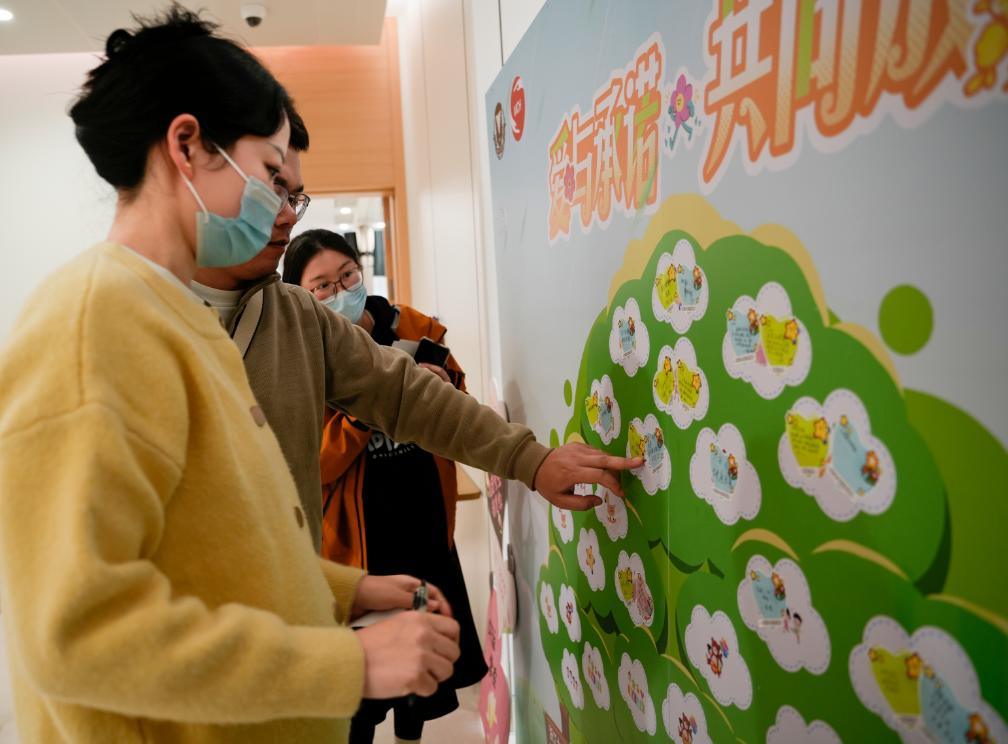 在“家庭树”互动环节,每个家庭成员写下对彼此的具体行动承诺,贴在象征家庭生命力的“家庭树”上。一句句朴实的话语,让爱从言语走向行动,被看见、被表达、被延续。
