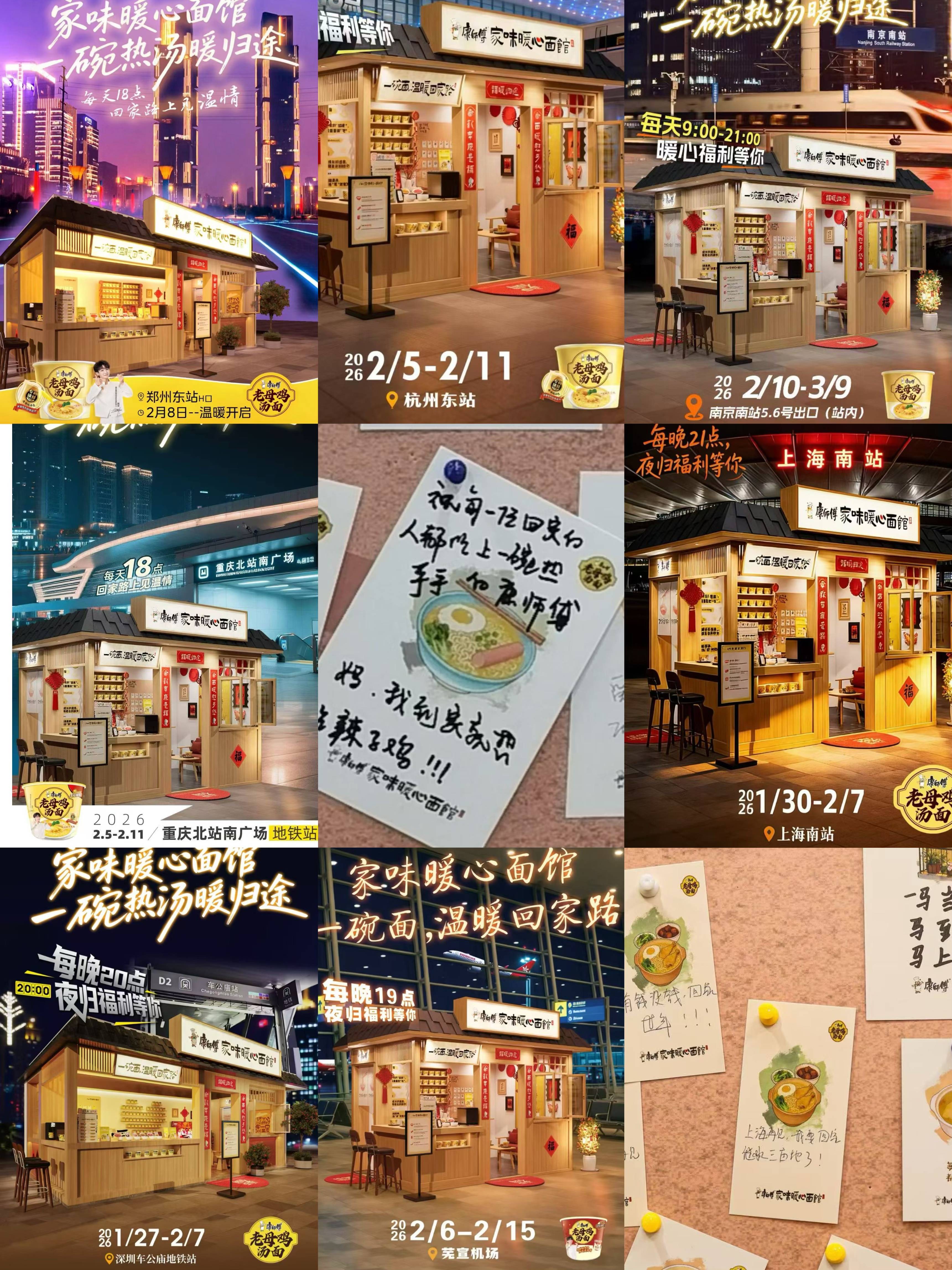面对即将到来的春节回家倒计时,康师傅还开启了25城「家味暖心面馆」,以一碗热面、一盏灯火,为冬日里的行人留下一处短暂停歇的地方。作为国民品牌,康师傅始终以“温暖陪伴”为品牌内核。此次活动,不仅是一次品牌与消费者的温情互动,更是康师傅老母鸡汤面“家味”理念的生动诠释。在这个春节前夕,用一碗热汤连接起城市里的万家灯火,让每一份奔赴归途的脚步,都能被温暖照亮。