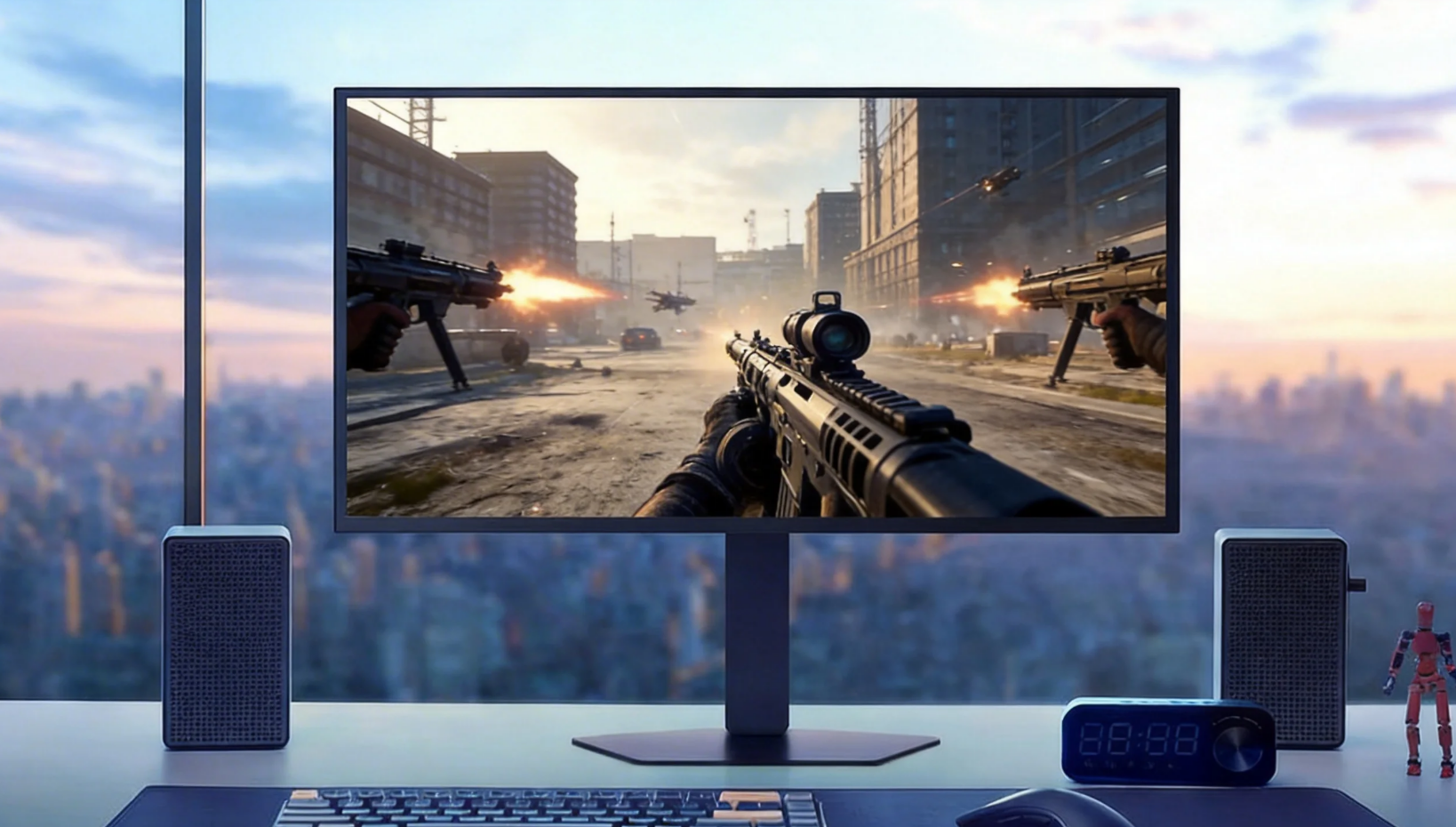 在三角洲行动的越野车丛林穿梭、绝地求生的摩托车山地疾驰中,快速移动的载具轮廓锐利、无重影,玩家能精准预判走位完成伏击;在使命召唤的近距离爆破对战、闪身对枪中,人物的每一个动作细节清晰可辨,让玩家提前做出反应,抢占战术先机。同时,显示器支持 AMD FreeSync Premium Pro+NVIDIA G-SYNC+VESA AdaptiveSync 全同步技术兼容,从底层杜绝画面撕裂与卡顿,即使开启高帧率、大视野设置,战场画面依旧丝滑流畅,完美适配战术射击游戏的高速对战节奏。