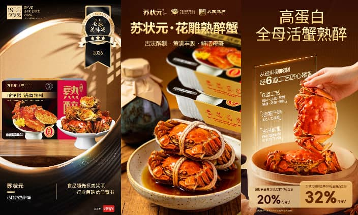 第八届iSEE全球奖评选结果揭晓,大闸蟹产业标杆品牌--苏状元强势突围,一举斩获三项国际荣誉:熟醉蟹摘得iSEE全球美味奖3星奖章,佛跳墙连续两年斩获星级认证,大闸蟹“金牌”礼盒拿下iSEE·劳拉视觉锤全球奖。
