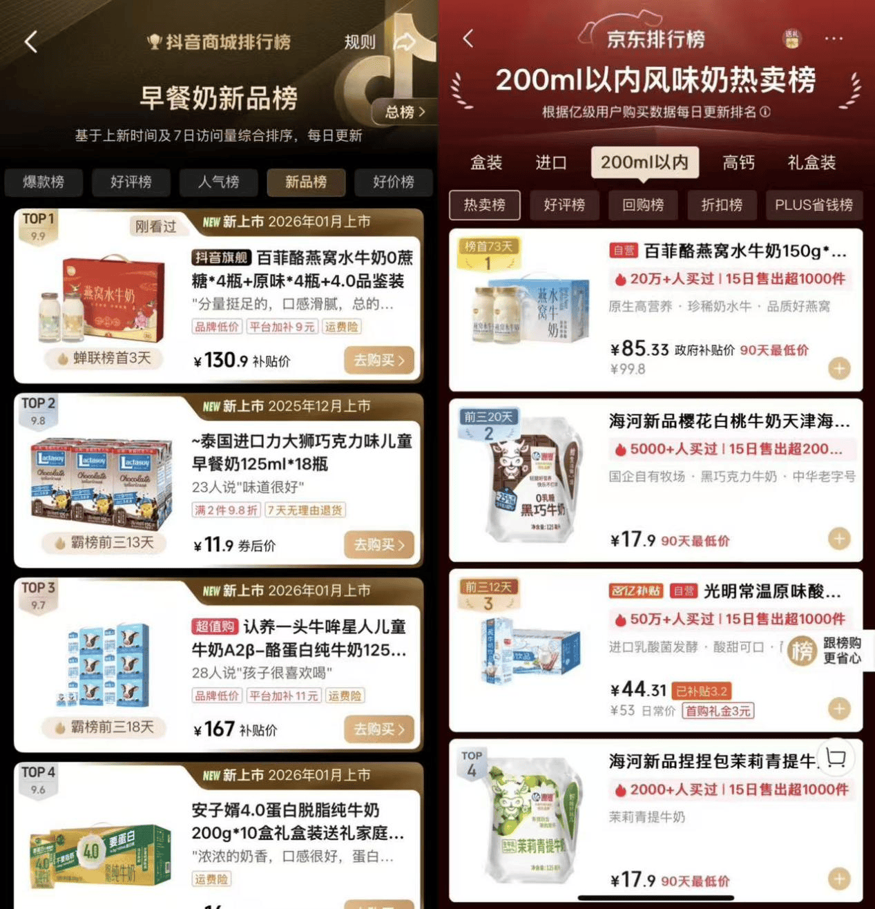 因此,高端轻养乳饮应运而生,成为打工人对抗亚健康的新式武器。中国水牛奶领导品牌百菲酪精准地捕捉到了年轻人对“营养、便捷、口感与体验”多效合一的乳品诉求,重磅推出新品百菲酪燕窝水牛奶。新品一经推出就风靡全网,迅速拿下抖音商城排行榜早餐奶新品榜TOP1、京东排行榜200ml以内风味奶热卖榜TOP1,霸榜多日、好评无数。