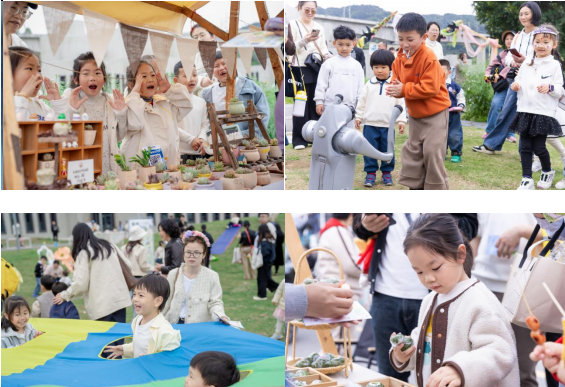 本次春游市集设置好骑心风会、非遗手作坊、后备箱美食、公益行动派四大主题区域,全园幼儿及家长按路线有序参与。孩子们在趣味运动中感受春风活力,在非遗手作中触摸传统文化肌理,在特色美食中品味春日滋味,在公益义卖中播撒善意种子,在沉浸式体验中收获知识与快乐。