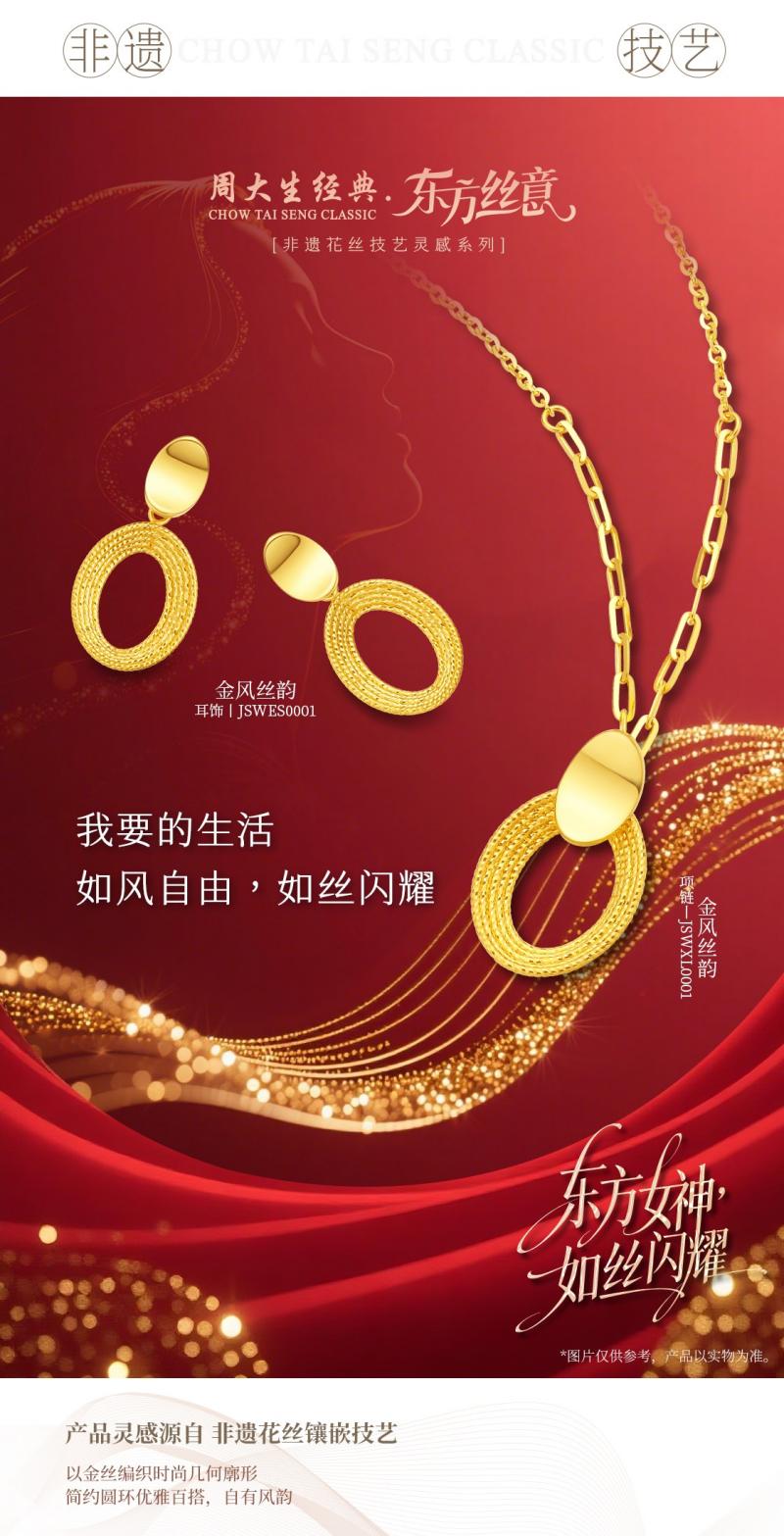 千年丝韵,至今未绝。周大生经典以现代珠宝设计为媒,令花丝镶嵌不再是封存在展柜中的古老非遗技艺,而是流动于当代女性日常的东方风骨。东方丝意系列“柔情丝意”以绕丝之柔,尽释魅力;“蝶变新生”以破茧之韧,见证新生;“金丝凤韵”以风仪之韵,演绎从容。三者各执一韵,却同归一处,以金丝为笔,续写传承的注脚。这既是对非遗花丝镶嵌技艺和匠人精神的致敬,亦是对当代女性多元力量的礼赞,于柔韧中见刚强,于沉静中自生辉。丝意无尽,光华自生;匠心所至,即是新生。