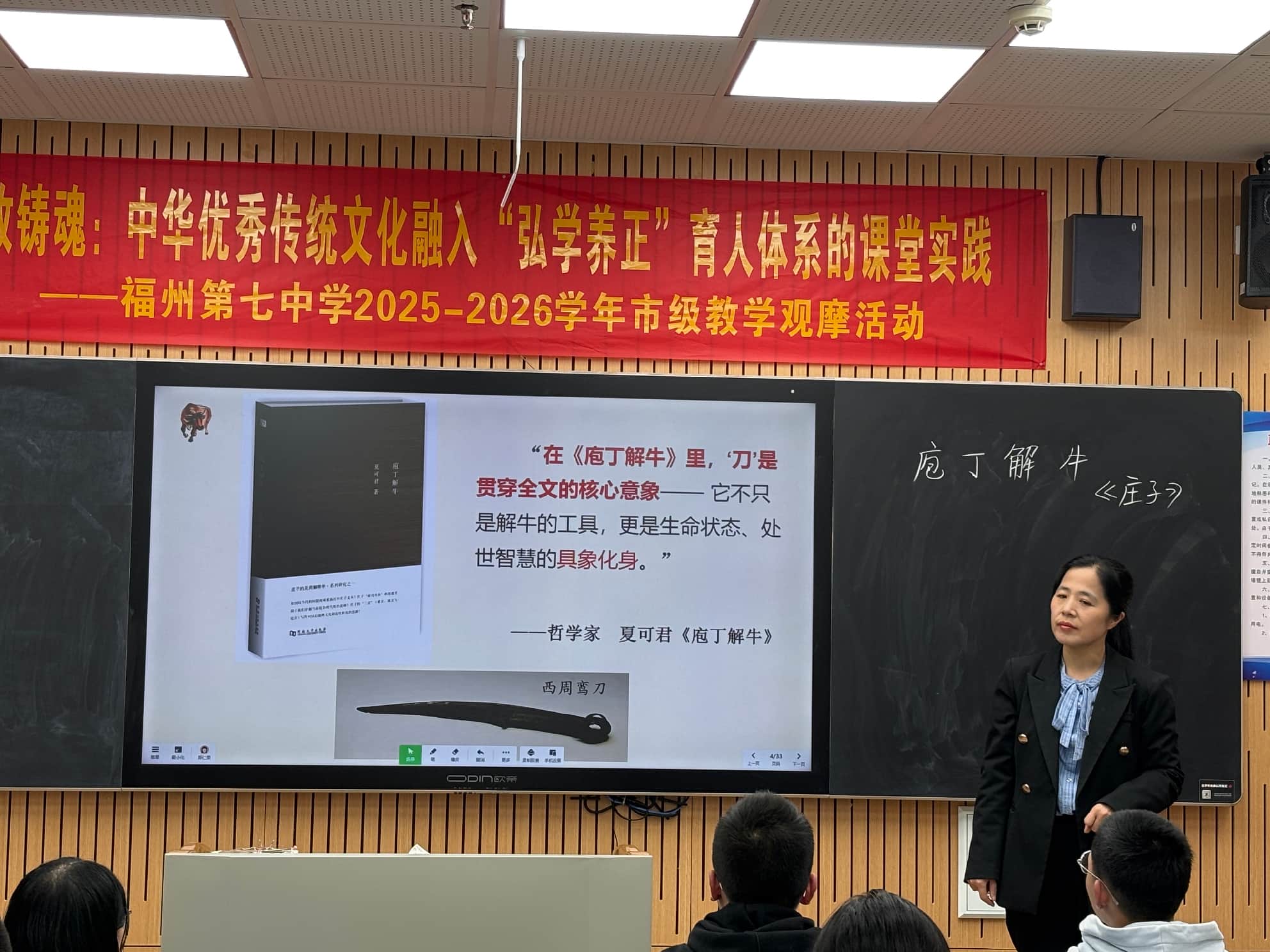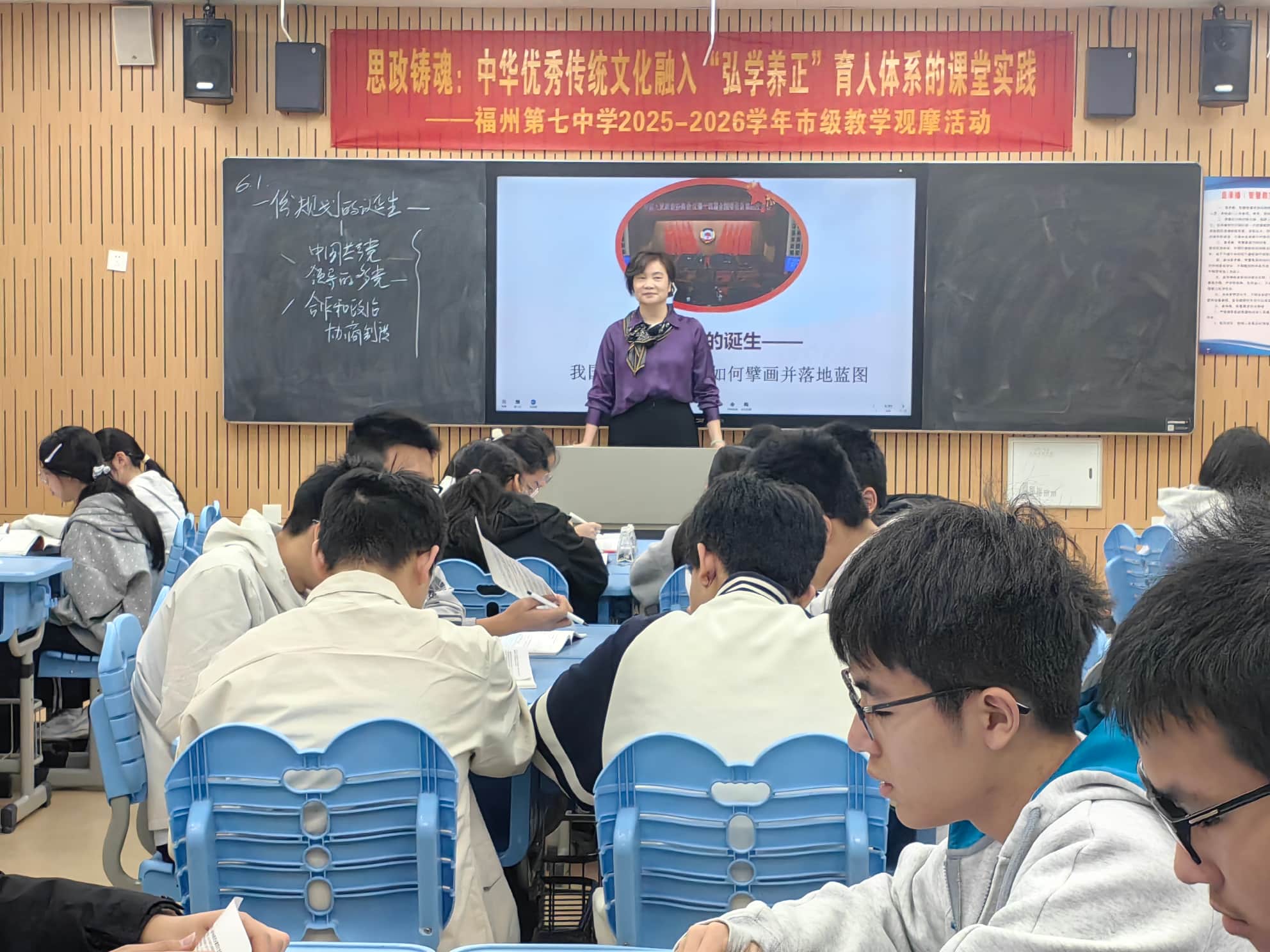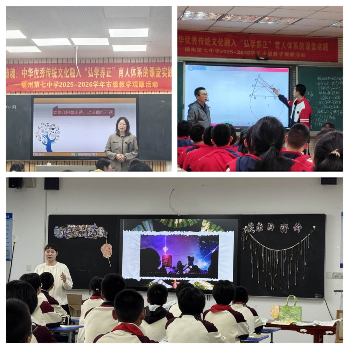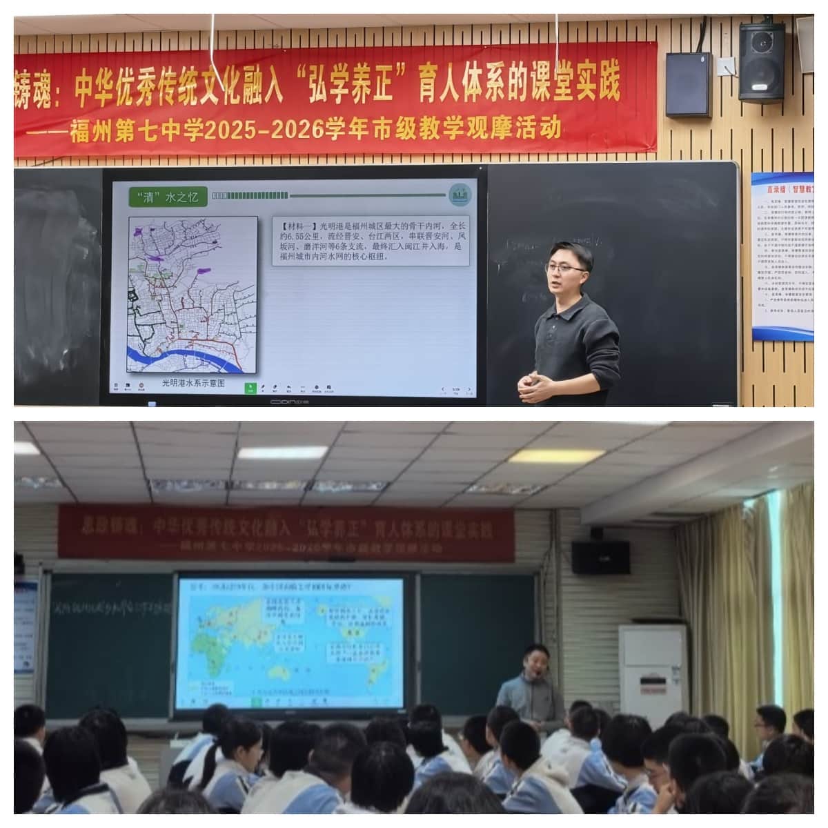 本次市级教学观摩周,是福州七中 “弘学养正” 育人体系的集中展示,也是思政教育与传统文化、学科教学、地域资源融合的创新实践。未来,学校将持续深耕课堂主阵地,以文化人、以思政铸魂,不断完善高质量育人体系,为培养担当民族复兴大任的时代新人持续贡献力量。
