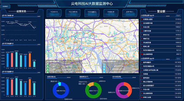 针对社区场景中不同运营管理方(如充电服务运营商、代理商、物业等)的核心需求,尖电科技提供了一站式、可视化的智慧管理解决方案: