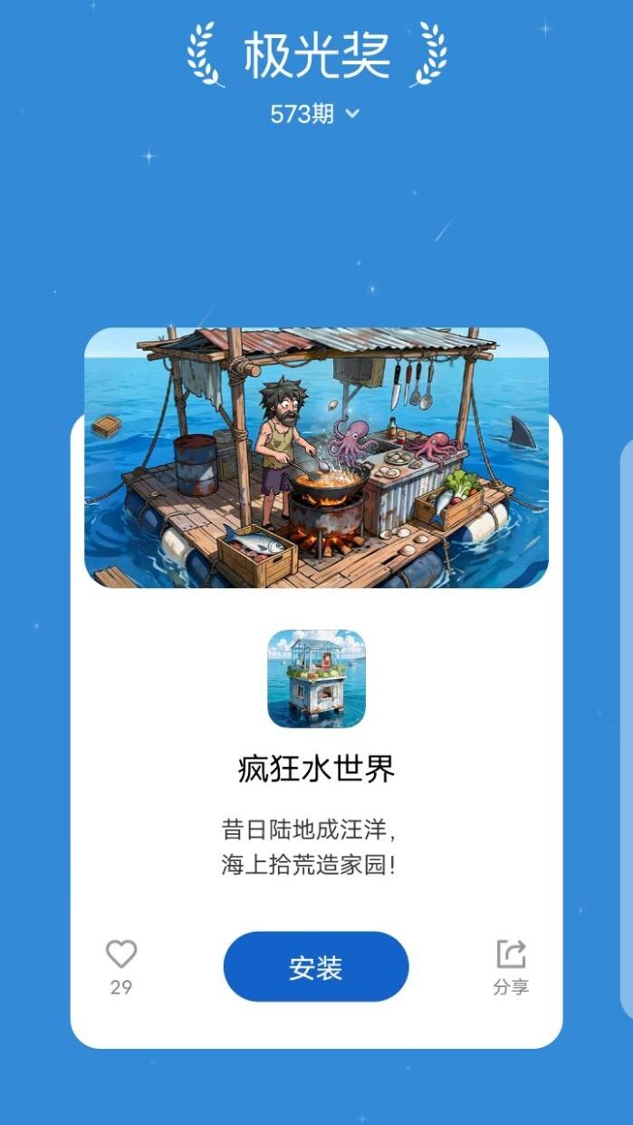 vivo应用商店「极光奖」则通过多维评审机制,从用户体验、产品品质及市场反馈等多个维度出发,在海量应用中筛选具备综合竞争力的优质产品。从行业角度来看,两大奖项不仅承担着优质内容筛选职能,也在一定程度上反映出当前移动游戏市场的内容趋势。益世界《疯狂水世界》同时获得双平台推荐,体现其在市场表现和游戏品质的综合优势。