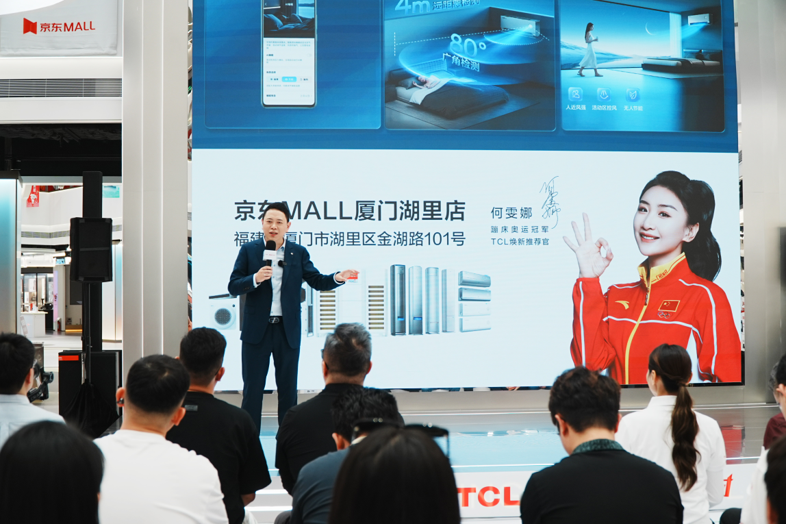 4月12日,TCL“冠军中国行”厦门站在京东MALL厦门湖里店启幕。活动现场,蹦床奥运冠军、TCL焕新推荐官何雯娜亮相现场,与广大市民零距离互动,共同见证TCL 小蓝翼 P6 Ultra AI舒适睡眠空调、TCL小蓝翼·全域风Pro AI健康舒适空调的发布。