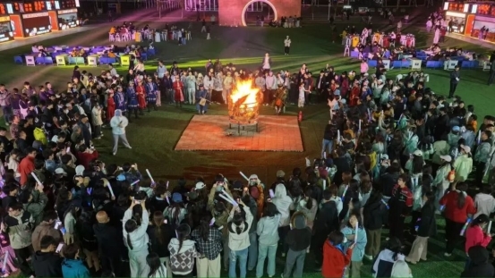 13日晚,“居延故地 神舟故里”中国西部国际写生研学基地启动仪式暨额济纳首批研学欢迎晚会在居延明月夜文化街区广场举办。晚会在舞蹈《悦动琴弦》中拉开帷幕,《丰美家园》《目不转睛》《hype boy》《查干陶海的故乡》等节目轮番上演,精彩纷呈。活动现场还进行了未来设计师大赛解读与研学基地授牌启动仪式。随着马头琴曲《万马奔腾》奏响,篝火点燃,晚会气氛达到高潮。师生与观众欢聚一堂,沉浸式感受额济纳浓郁的民俗风情与人文热情。