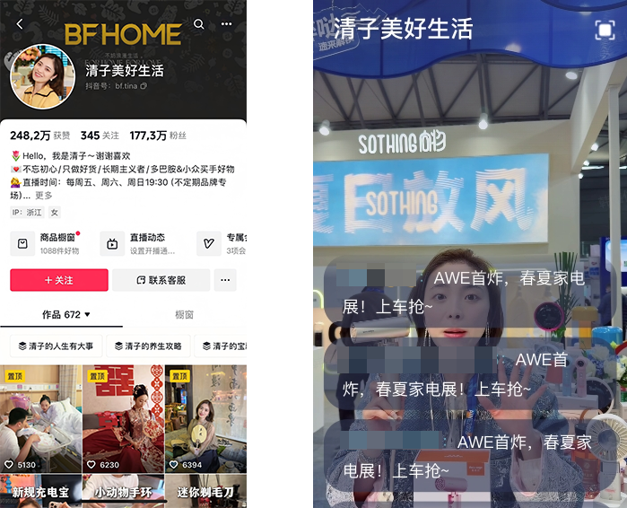 @清子美好生活 就在这种场景升级上找到了生意的突破口。她大胆跳出了传统的居家直播模式,把直播间搬到了AWE展会现场。这种从温馨生活区向专业科技展馆的场景跨越,不仅为直播间注入了强烈的科技感和沉淀感,更让品牌背书变得触手可及。在充满行业高度的营销氛围加持下,原本枯燥的电器讲解变成了极具说服力的沉浸式体验,粉丝的下单意愿被迅速激活,带动GPM较展播前激增153%,最终拿下了单场GMV79万的亮眼成绩。
