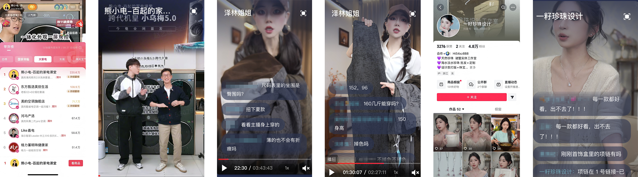 时尚买手@泽林姐姐 深度合作原产地好货,通过优化讲品细节和现货发售,近30天结算率稳定在50%+,用御姐风的利落穿搭穿透了职场女性的心。珍珠赛道的代表@一籽珍珠设计,凭借线下实体店主理人的真实感,实现日均结算GMV月环比增长344%,单场GMV最高达到61.8万。这些生意的爆发,往往源于对经营细节的极度投入和品类的精准拓展。