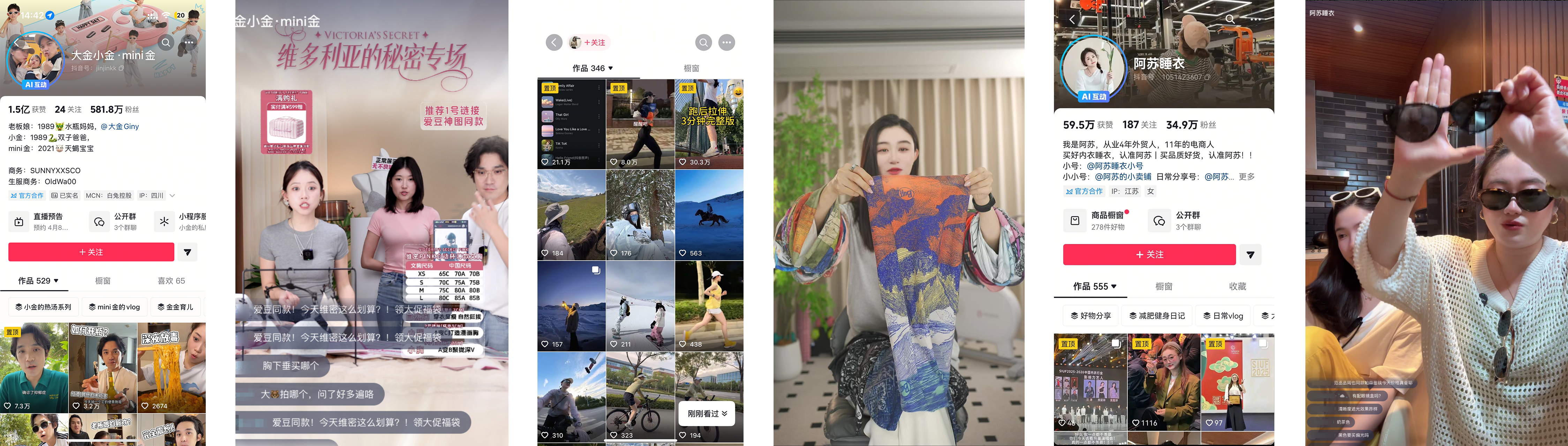 @大金小金·mini金 在平台建议下从食品类目拓展至美容仪、内 衣等女性向品类,维密专场GMV对比历史场均提升了294%,单场交易总额417万,完成了从“分享生活”到“精准带货”的跨越。运动系达人@四喜丸子 展现了极强的韧性,把直播时长从2小时拉长到4小时,单场最高成交额冲到了70万。@阿苏睡衣 则结合时令将货盘从内 衣拓展至墨镜配饰,像闺蜜一样帮用户选货,单日GMV突破了300万。
