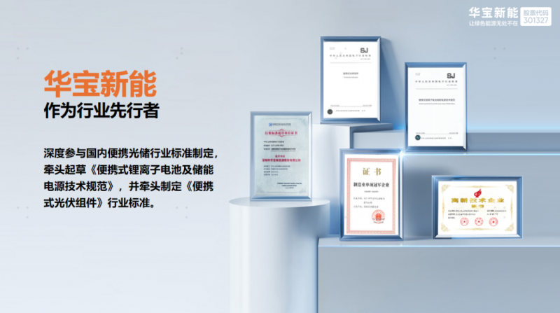 作为户外电源市场的早期开拓者,华宝新能很早就精准捕捉到了安全管理的核心痛点。在产品端,华宝新能早已全面采用车规级BMS安全管理和高品质的UL认证电芯,配合行业领先的高温保护设置与强制对流散热设计,从底层架构上防范了过热与过充风险。在制造端,华宝新能凭借先进的现代化PCBA制造车间、防呆验证体系以及严苛的质量管理,成为了便携储能行业首家获IPC-A-610 3级标准认证的企业。新国标对智能管理和全流程管控的强硬要求,恰恰印证了华宝新能长期以来坚守的技术路线与严苛品控,早已走在了行业规范的前列。三、以标准之力护航安全:华宝新能的定力与底盘在本次《技术规范》的起草组中,华宝新能能够作为主要起草单位之一,将其在研发、制造中积累的理念转化为国家标准。这背后,是其长期扮演“标准引领者”的实力底盘支撑。事实上,从便携储能到光伏组件,华宝新能此前已牵头参与了多项国家和行业标准的制定。早在2023年,华宝新能就作为主要起草单位之一,参与制定了我国首个《便携式锂离子电池储能电源技术规范》,推动行业管理向规范化迈进;2024年,又率先发布了《光充户外电源(SG)企业标准》,针对储能与光伏一体化场景提出独立规范,弥补了行业标准化盲区。此外,华宝新能还牵头制定了《便携式光伏组件》行业标准,持续以“定义者”的角色推动行业高质量发展。