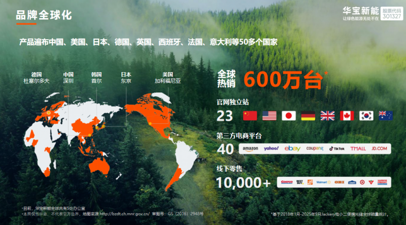 高标准的背后,是持续的技术投入与积累。为了确保产品在多变的户外环境中稳定运行,华宝新能已围绕便携储能、家庭储能及光伏产品领域布局了完整的研发体系,构建起覆盖电芯管理、能量转换、散热结构、户外场景适应性等多维度的技术护城河。其产品及配套光伏组件必须经受振动、跌落、户外暴晒、湿热等极限环境试验。凭借对可靠性的死磕,华宝新能也成为了行业首获TüV南德“可靠的光充户外电源”认证的企业。在持续的技术深耕与严苛的标准体系下,如今的华宝新能已累计全球布局2766项专利,产品走进了全球50多个国家,累计销量突破600万台。