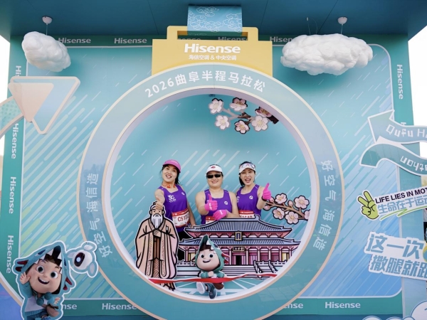 此次赞助2026曲阜半程马拉松,也是海信空调30周年系列活动的重要组成部分。赛场上,由海信空气事业部总裁殷必彤带队,海信空气产业跑团身着统一服装集体亮相,胸前的30周年专属标识及“三十而立 智启新程”主题格外醒目,成为赛道上极具品牌辨识度与感染力的风景。