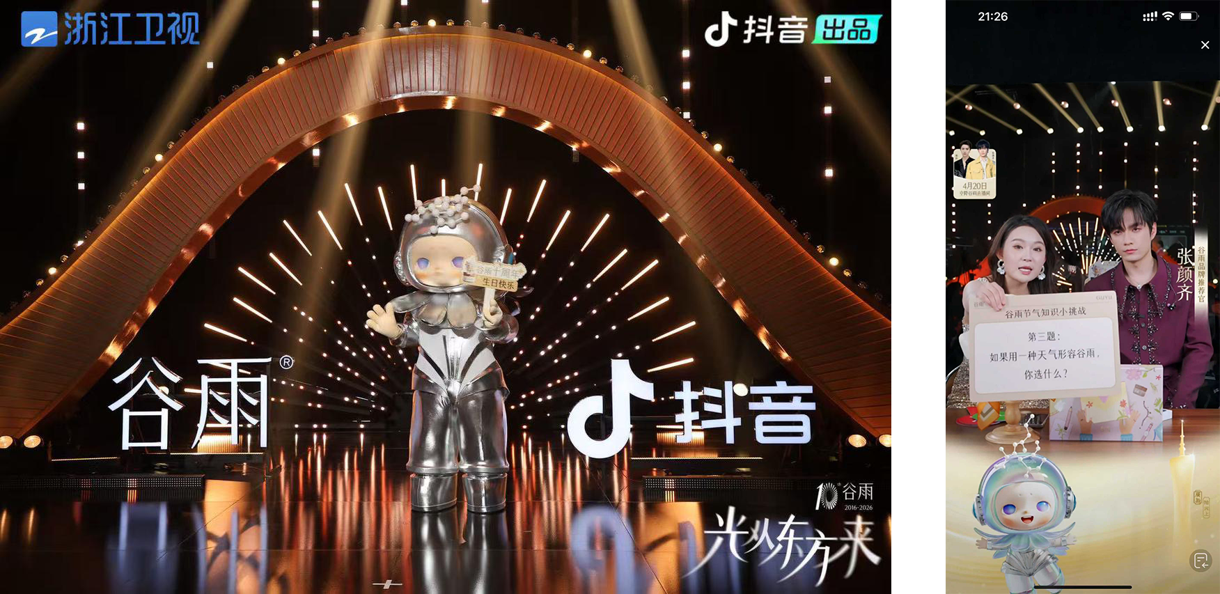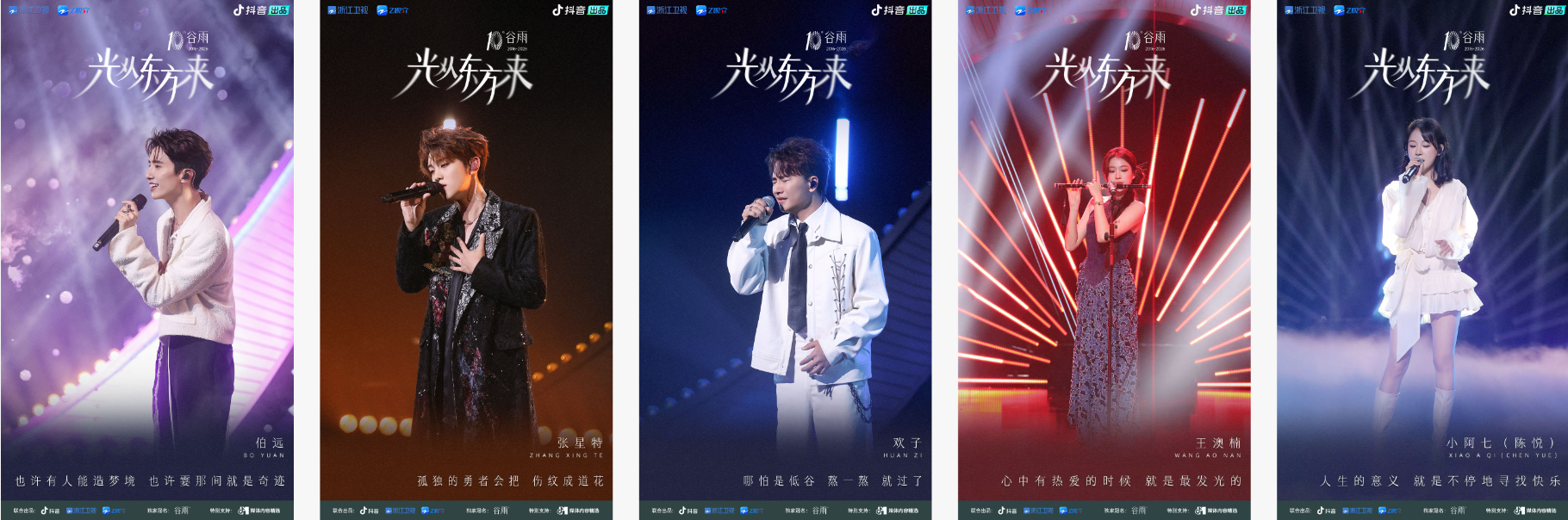 作为独家冠名方,谷雨品牌顺着“光从东方来”的主题,把品牌融入了每场音乐会之中。品牌 IP 形象谷的白以追光使者的身份,自然融入晚会的每一个环节,把“脸上有光,心中有暖”的品牌期许,传递给每一位观众。