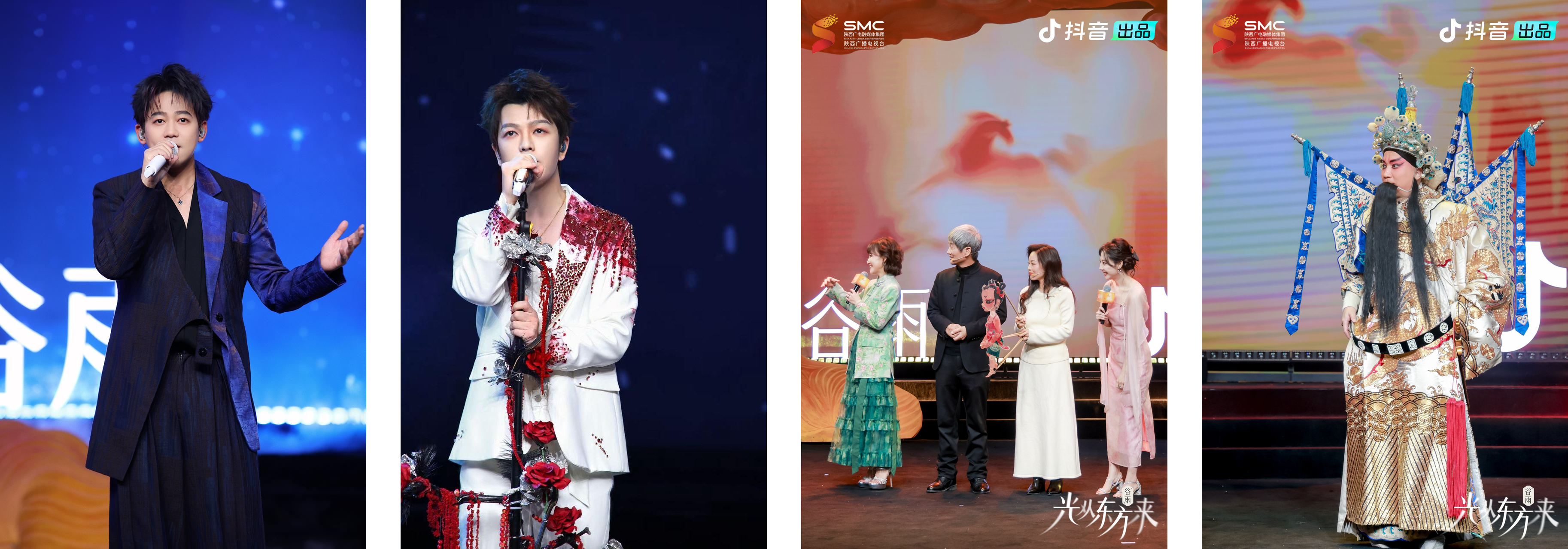 今年2月12日上线的西安“启新生篇”,则扎根地域文化,把盛唐风华与新春氛围玩出了新花样。音乐会未播先火,# 王栎鑫跟着苏醒回西安了# 的话题就引爆全网。音乐会上,西安本土艺人苏醒带着好友王栎鑫回乡同台,合唱《快乐在哪里》的默契互动,把老友相聚的欢喜展现得淋漓尽致,相关片段刷屏各大社交平台,带动 #0713派出苏醒王栎鑫炸场# 等话题接连登榜。非遗文化的年轻化表达更是成为一大亮点:华州皮影配上王晰的低音炮,把古诗里的浪漫演活了;秦腔老艺术家把抖音热歌唱出了武侠味儿,被网友笑称 “这才是真正的东方摇滚!”。最终这场晚会交出了抖音站内 #光从东方来 累计话题观看量12.04亿 +、直播累计观看人次2874.2万的亮眼成绩单,成为开年最火的文化事件之一。