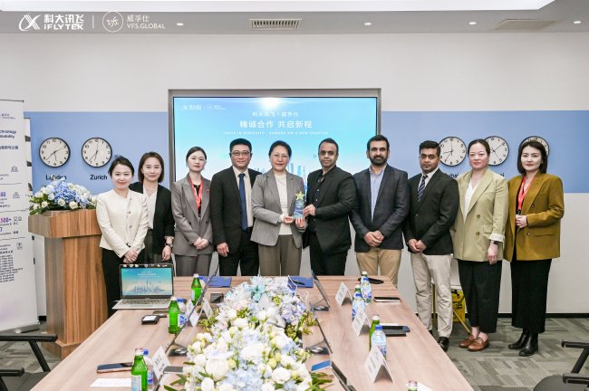 4月17日,人工智能翻译领军者科大讯飞AI翻译与全球领先的签证外包与技术服务专家威孚仕VFS Global,在上海举行签约仪式,双方负责人共同出席。