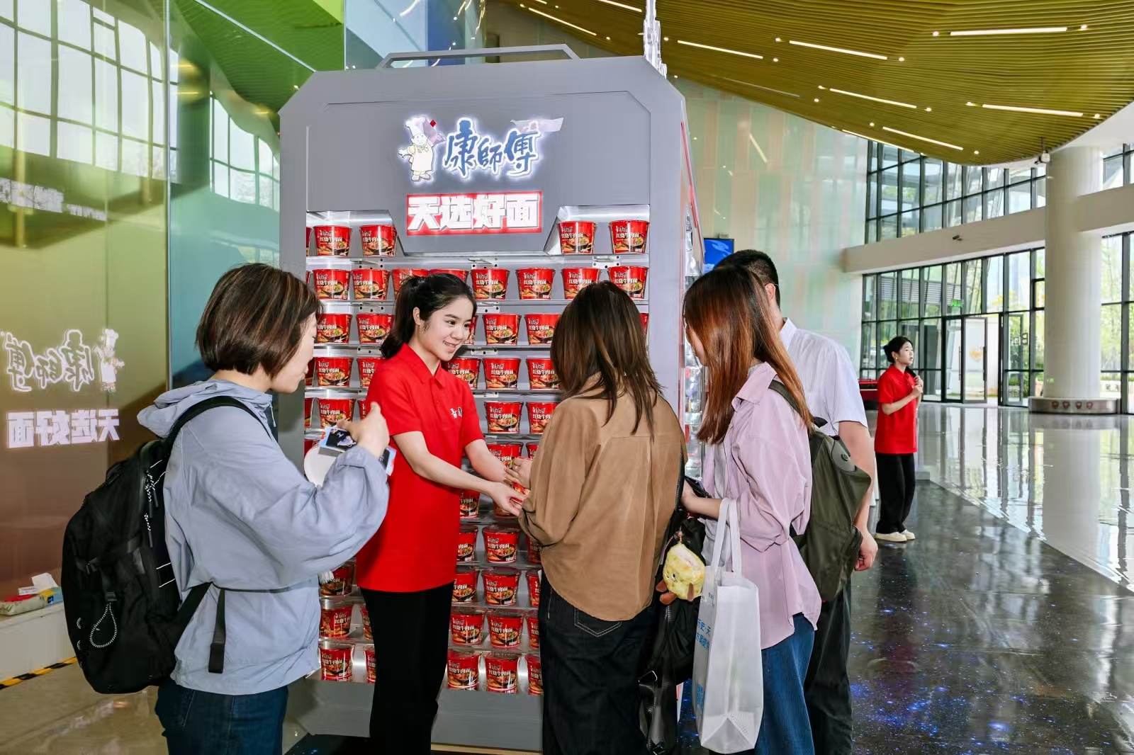 凭借这些硬实力,康师傅还拿下了WRCA认证,成为国内首家把航天专利用在方便面领域的企业,这排面直接拉满!现场还有互动问答环节,答对就能薅周边,大人小孩都玩疯了~
