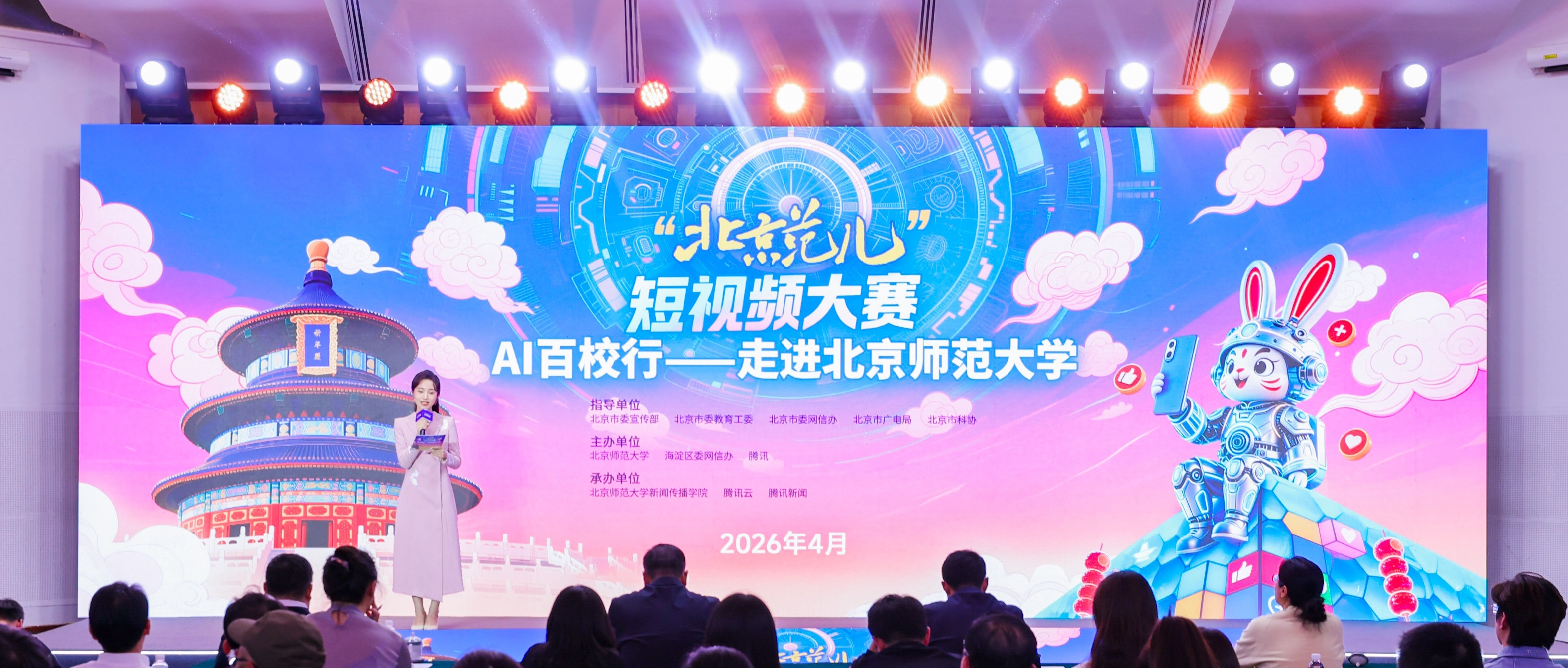 4月26日,“北京范儿”短视频大赛及腾讯AI百校行活动在北京师范大学启动,本次活动由北京市委宣传部、市教工委、市委网信办、市广电局、市科协指导,北京师范大学、海淀区委网信办、腾讯公司主办。活动集专家分享、AI实训、互动体验于一体,为青年学子搭建起AI科技与视频创作融合的交流平台。
