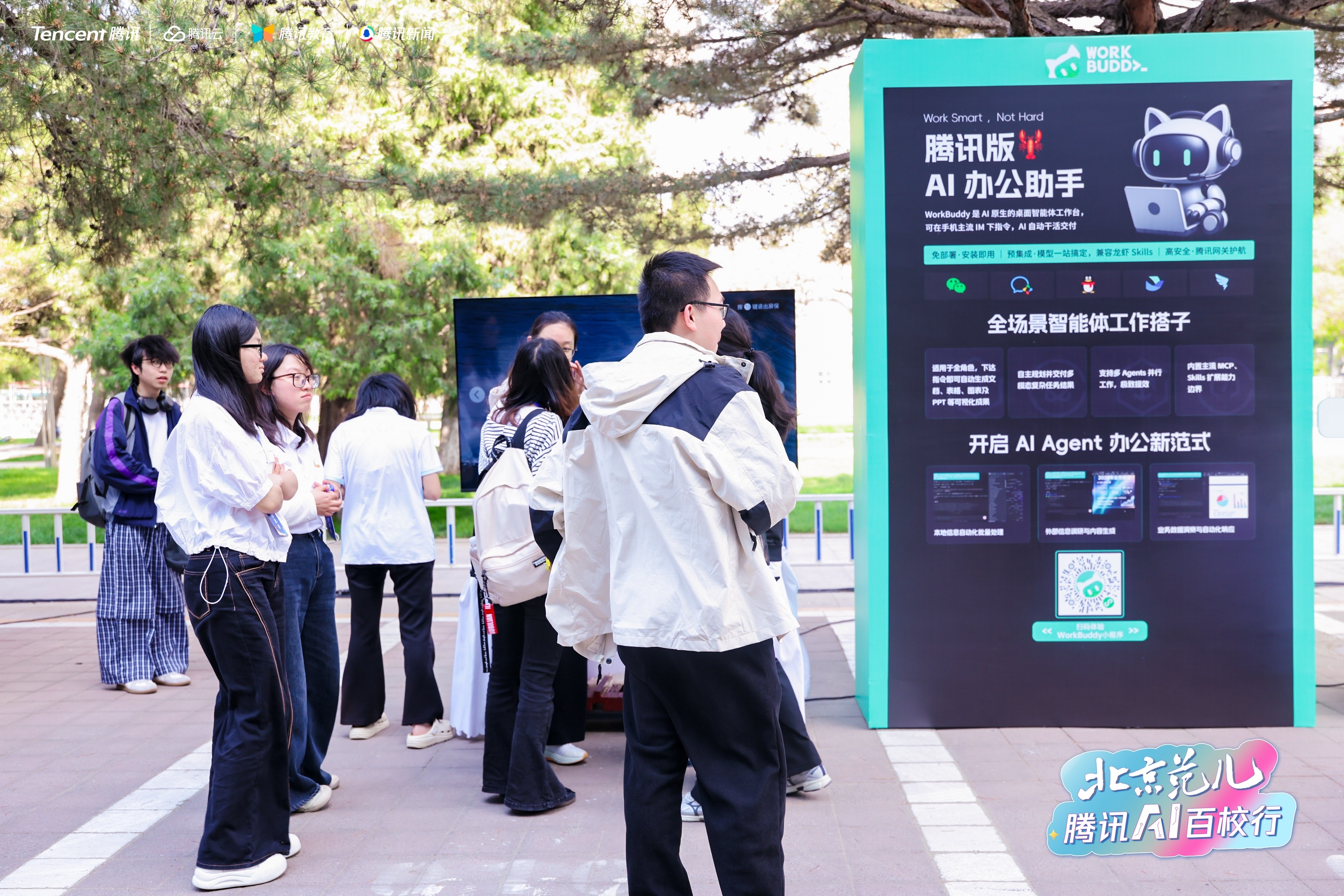 当前,AI已经演进成为青年学子的必备工具。在学习、科研、团队协作、个人创新创造等领域,腾讯青少年AIGC创作工坊、WorkBuddy智能体工作台、以及ima知识库等工具,正在成为同学们安全、高效、便利的个人助手。此次腾讯AI百校行走进北京师范大学,也希望以好用的AI 技术,助力优秀科创力量的培养,助力青年学子铸造未来竞争力。