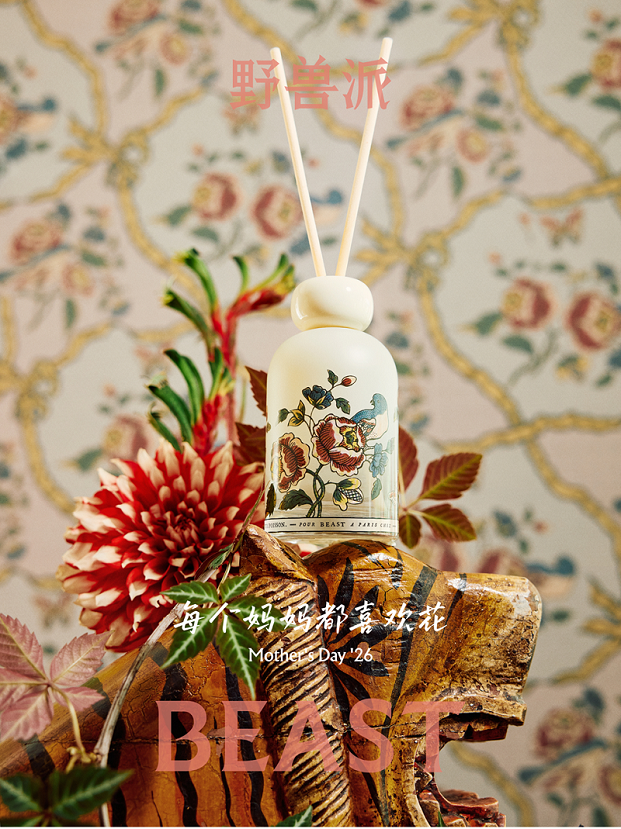 本季野兽派以苹果脸玫瑰为灵感,携手巴黎手工多米诺纸工作坊Antoinette Poisson,以手工纸艺主题插图描绘这份清甜香气,将限定纹样延伸至香薰、蜡烛、丝巾、花礼等多个品类,呈现一座专属母亲节的苹果脸玫瑰花园。