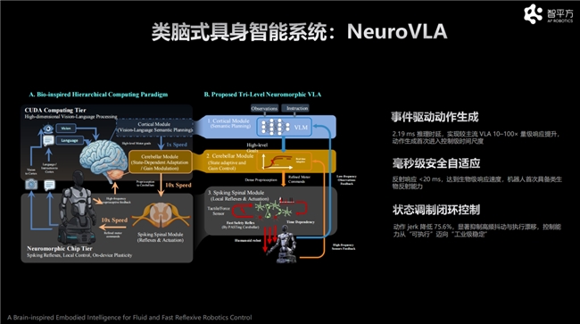 2025年11月,智平方发表融合世界模型的VLA具身大模型,实现“先预测、后执行”。本次大会,智平方正式对外披露了全球首个类脑架构VLA具身大模型(NeuroVLA),再次引领突破。