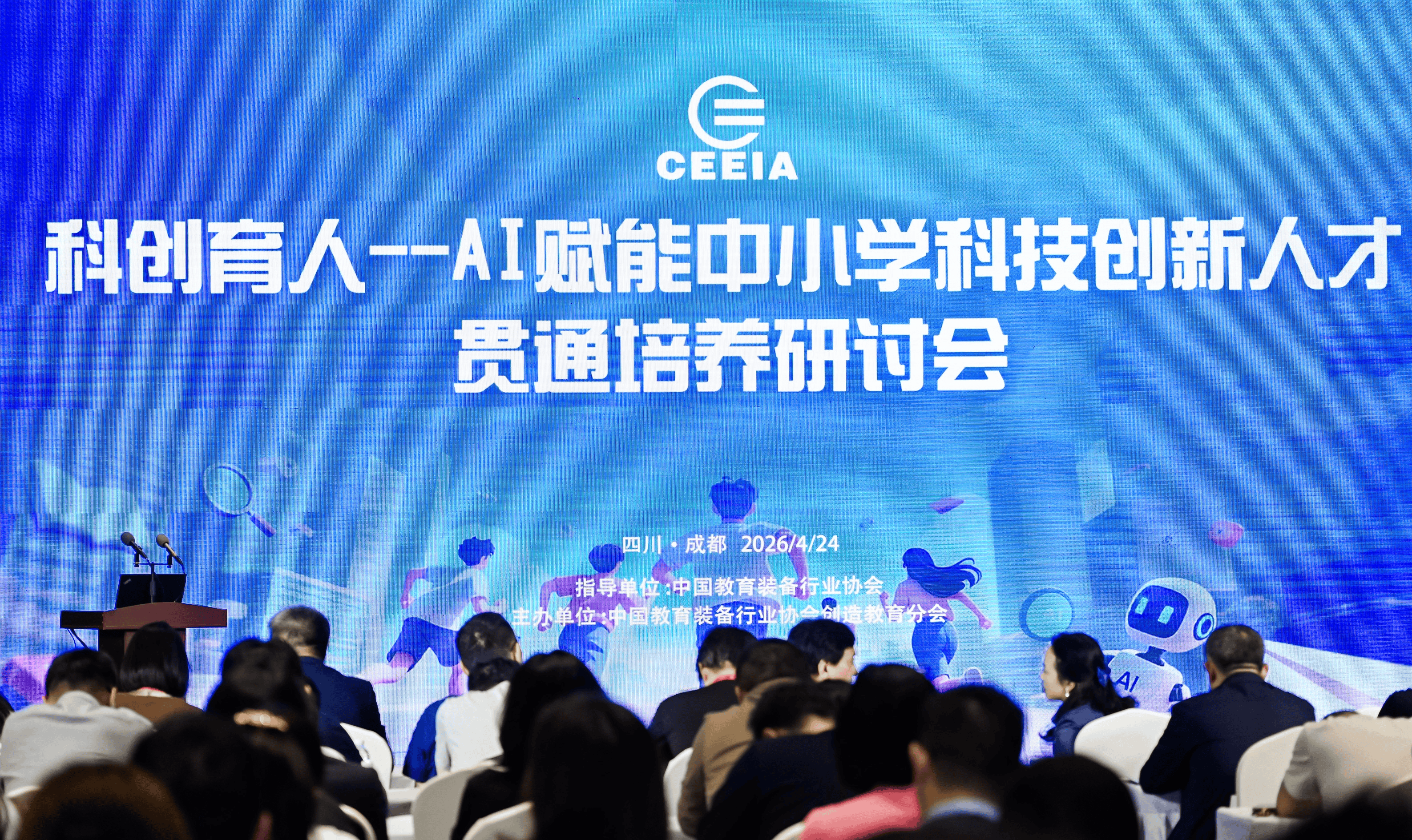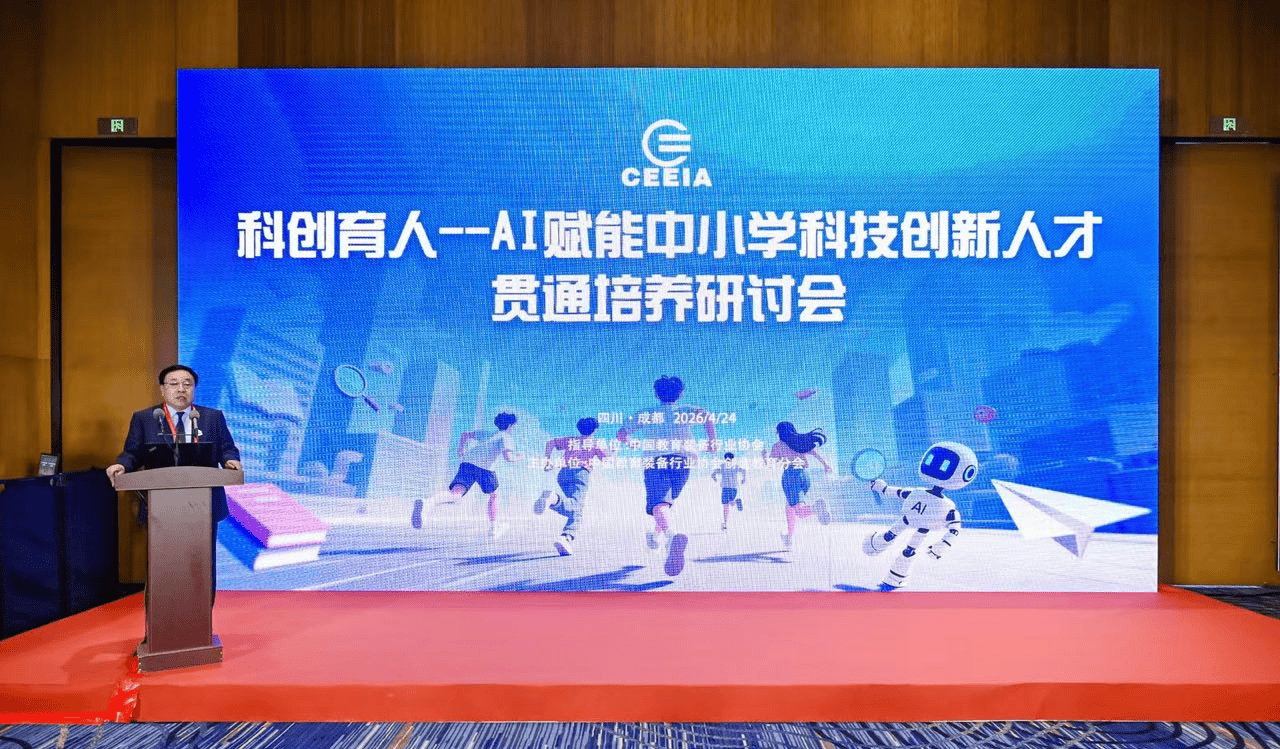 2026年4月24日,由中国教育装备行业协会创造教育分会主办的"科创育人——AI赋能中小学科技创新人才贯通培养"研讨会在四川召开。来自南京师范大学、腾讯科技、开源中国等机构和企业的代表,以及教育部及中科院有关指导专家齐聚一堂,围绕青少年科技创新人才贯通式培养展开深度对话。