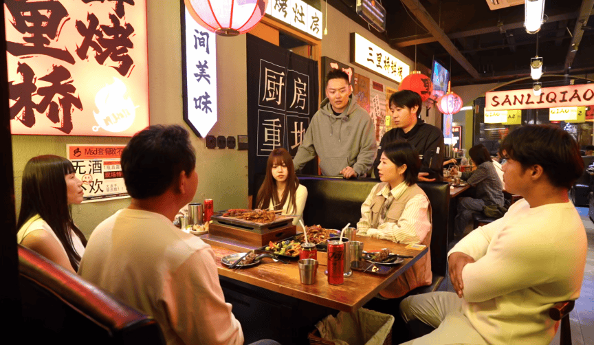 夜幕降临,达人们走进特色烧烤店,体验了一把上海的浓郁烟火气。在泰国,夜市氛围热闹外放,夜宵社交深入人心;而上海这座城市的夜生活在现代化进程中不断演变,天南地北的美食都能找到自己的位置,弄堂夜宵与多元餐饮并存,都市繁华与市井烟火和谐共生。达人围坐小聚中,感受了别样市井夜韵。