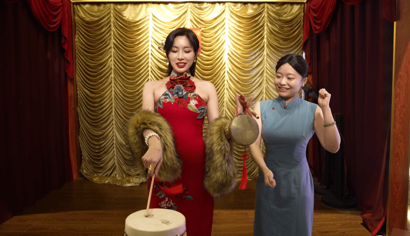 午餐落座临河餐厅,窗外流水潺潺、摇橹船悠然划过。席间,本地艺人演绎锣鼓书非遗曲艺,唱腔婉转质朴、韵味悠长,独特的江南传统民俗演绎,让泰国达人倍感新鲜,陈美媛(Luxsua)在学习击鼓敲打后说,这种体验太奇妙了,没想到中国有这么多种音乐形态。