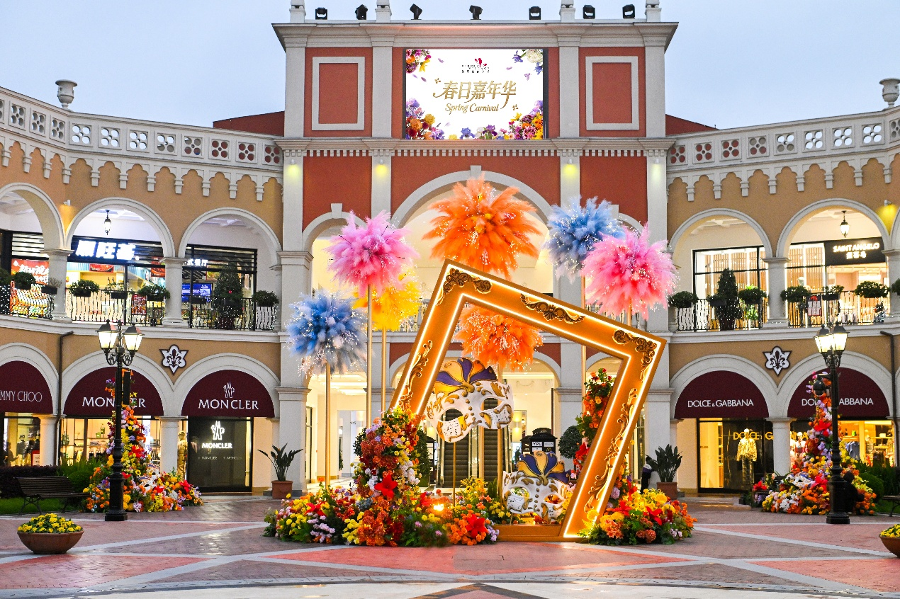节日期间,小镇以经典意式建筑为基底,将狂欢节的意象徐徐展开。巨型油画框装置、复古面具与繁花瀑布交织呼应,将春日浪漫铺满开放式街区。五一假期中,威尼斯主题巡游将于5月1日至3日惊喜上线,身着华服、佩戴面具的表演者与游客互动,派发节日限定礼遇,再现意式狂欢盛况。