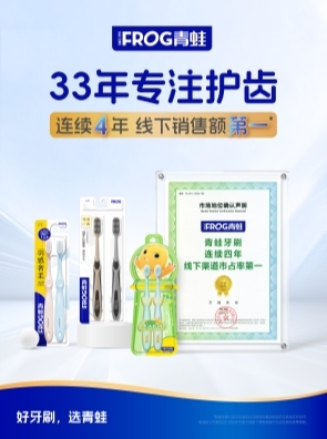 近日,青蛙品牌迎来33 周年里程碑,同时斩获艾瑞平台认证 —— 线下牙刷品类销售额连续 4 年销售额第一,用专注与品质,继续书写国民口腔护理品牌的成长答卷。