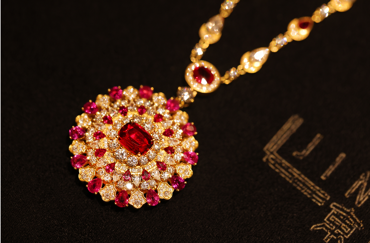 在用料上,京匠打破黄金品牌依赖纯金素面的惯性,引入欧洲高级珠宝工艺与名贵宝石,尤其是黄金与红宝石的“金红美学”,已成为品牌标志性的视觉语言——据行业信息,这一风格偏好甚至推动了T方切割红宝石市场价格的整体上扬。