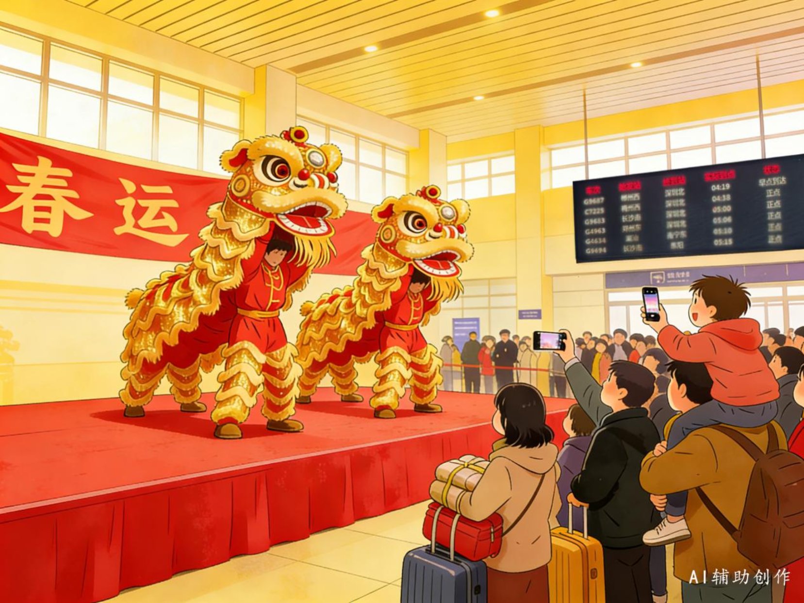 非遗文化与春运“相遇”,是传统与现代的和谐共鸣,是文化根脉与时代浪潮的同频共振。每一位带着“非遗记忆”踏上旅途的旅人,都成为了非遗文化的传播者,为“流动中国”注入更加鲜活的力量。(文字/AI漫画:张译文、徐文文)
