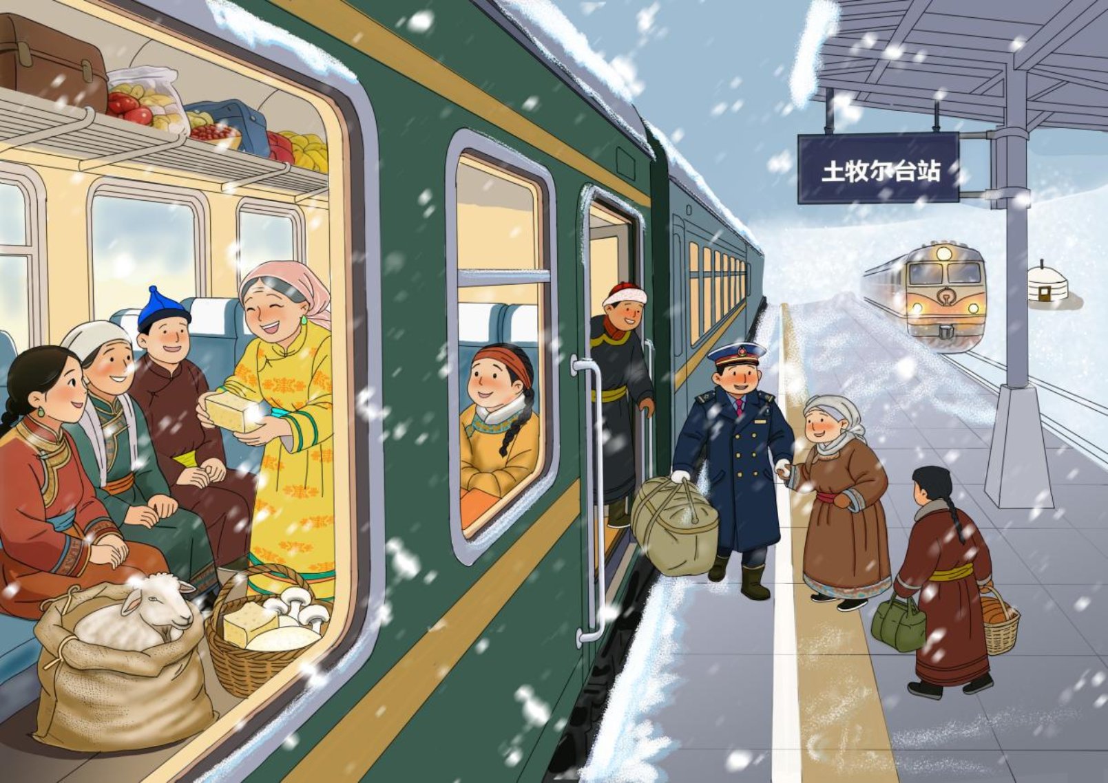草原“慢火车”顶风冒雪、一路前行,书写了“人民铁路为人民”的崭新篇章。展望未来,期待“慢火车”在草原上继续驰骋,在助力边疆高质量发展进程中发挥更大作用。(文字:吴颖;漫画:冯雅颂)