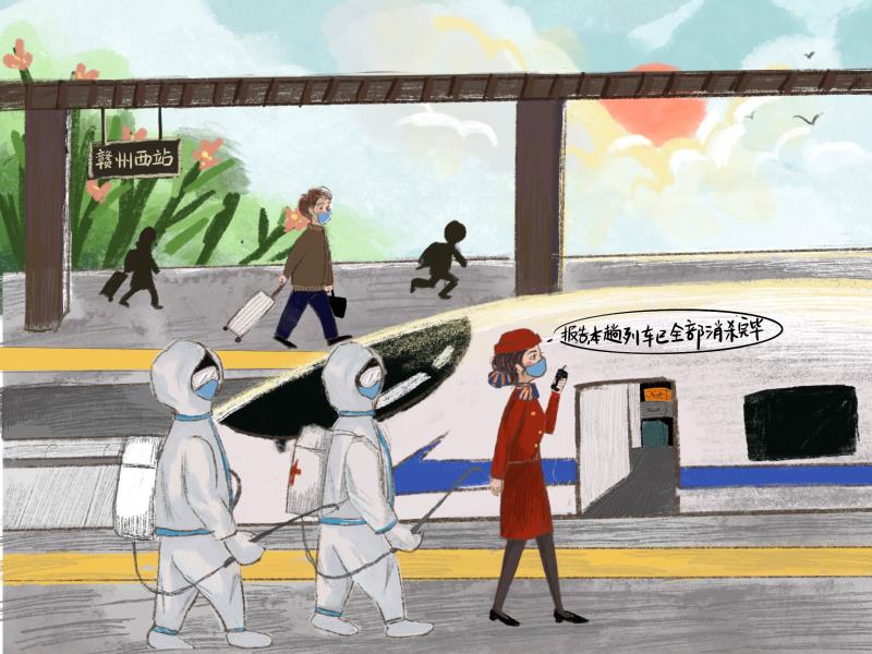 别样的春运,每个坚守岗位的人都了不起。随着春运的列车,牛年春节正踏步而来,让我们从自身开始做好防护,并向守护我们的人致敬,一起迎接下一个美好的春天。(文字:谢廖全红 漫画:吴怡憬 )