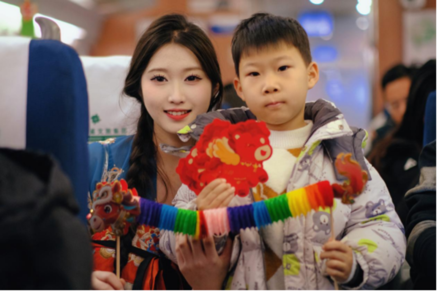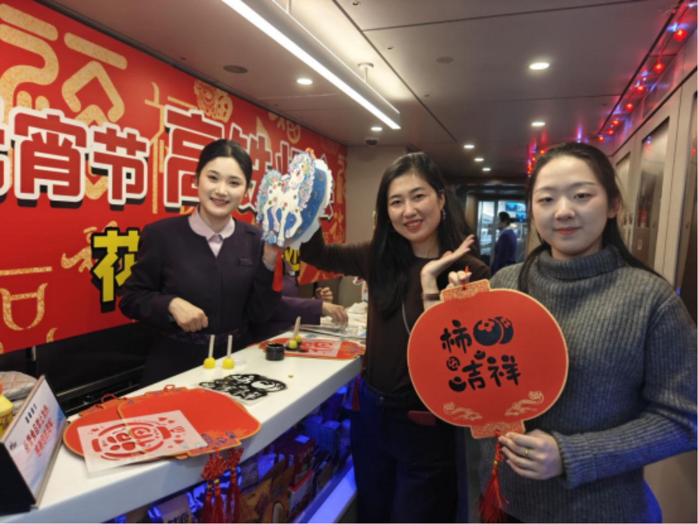 候车大厅里,身着民族服饰的铁路志愿者带着旅客猜灯谜,为文化传承添彩;列车上,乘务员递上冒着热气的汤圆,让旅客在旅途中也能尝到节日的甜;车厢过道里,临时支起的小游戏摊位人气十足,趣味互动让旅途时光变得鲜活有趣……2026年元宵节如约而至,万里铁道线上暖意涌动。站车之间,铁路职工用精心准备的灯谜、礼物和小游戏,为旅客打造欢乐祥和的出行体验。旅途有终点,但这份暖意,会随着每一位旅客,融入万家灯火。(图片:范吉萍、姜守凯;文字:林杨、张赛)