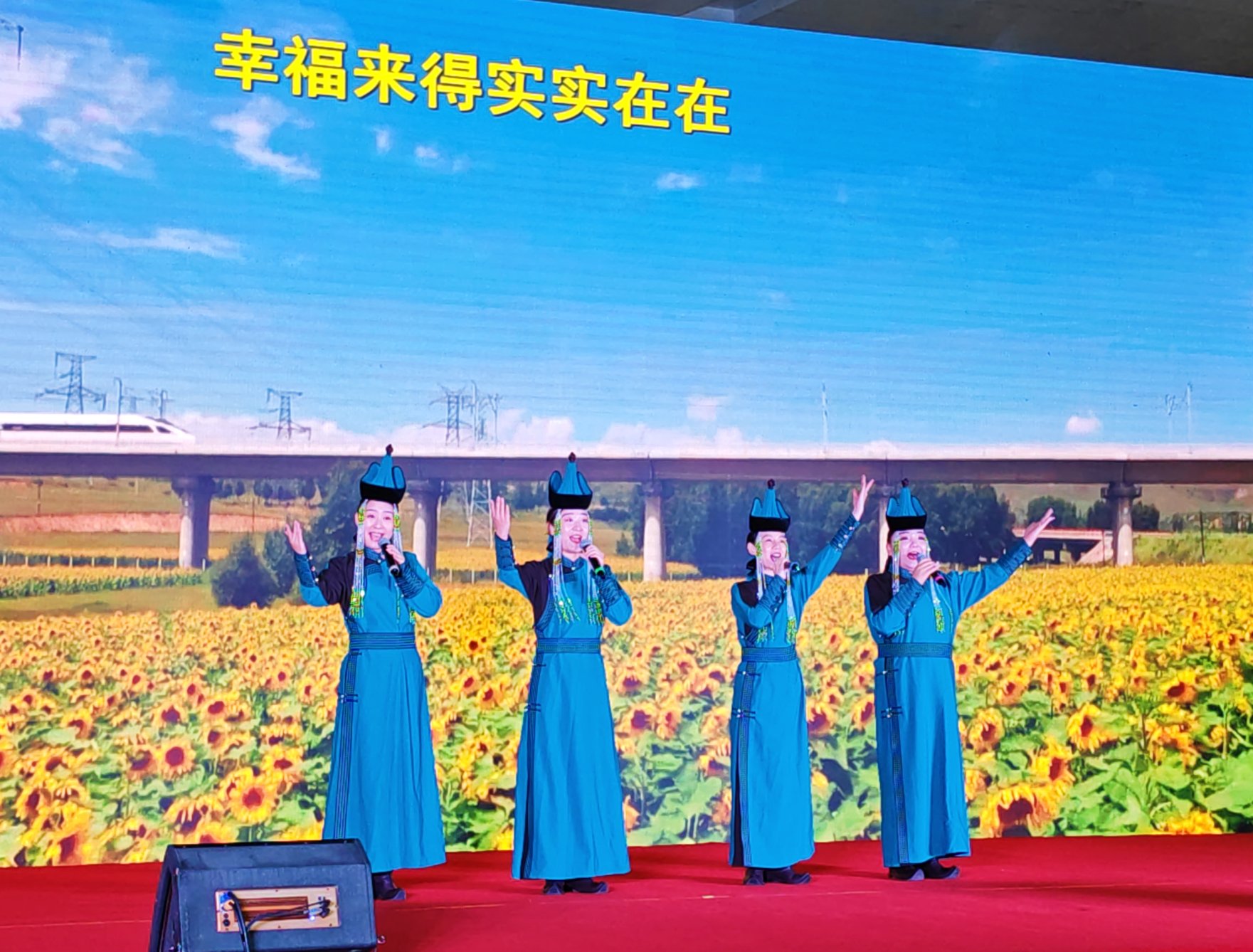 (草原铁路文艺轻骑兵开展“呼铁乌兰牧骑+”常态化演出服务。张宝珍 摄)