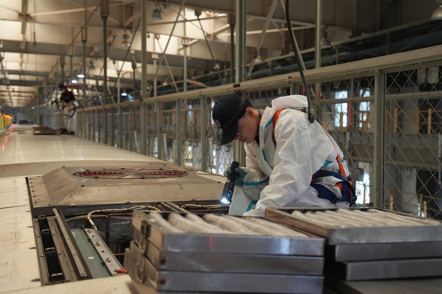 (动车组机械师正在进行空调预热器检查。张道勤 摄)