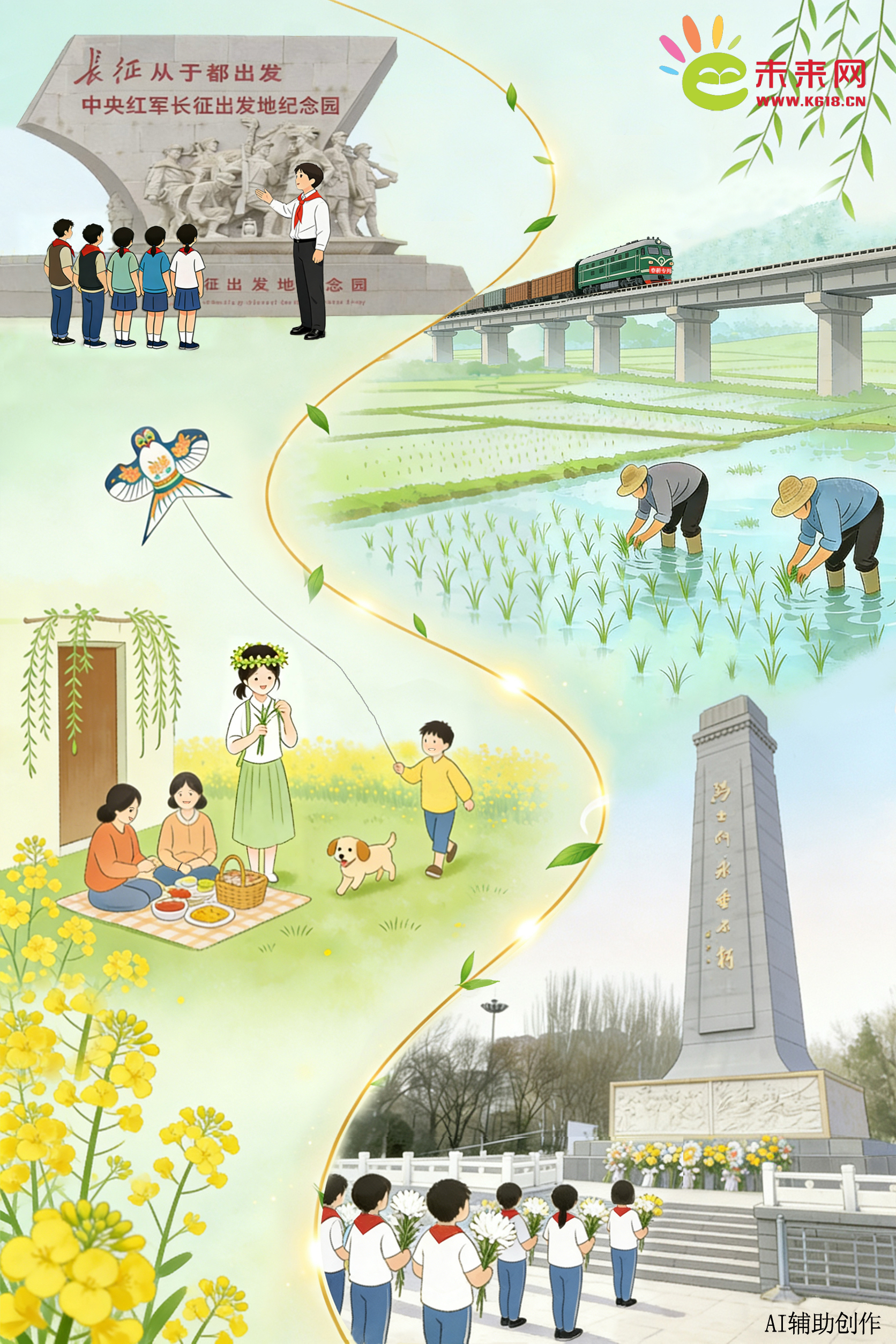 清明时节,在缅怀与追思中铭志,在传承与创新中汲取智慧,是为了更好地出发。让历史的火炬照亮前路,让英烈精神深植心田,让砥砺奋斗的信念融入骨血,我们定能带着这份源自民族记忆深处的磅礴力量,步履坚定、斗志昂扬地走向更加光明壮阔、繁荣昌盛的未来!(文字:魏平;AI漫画:徐文文)