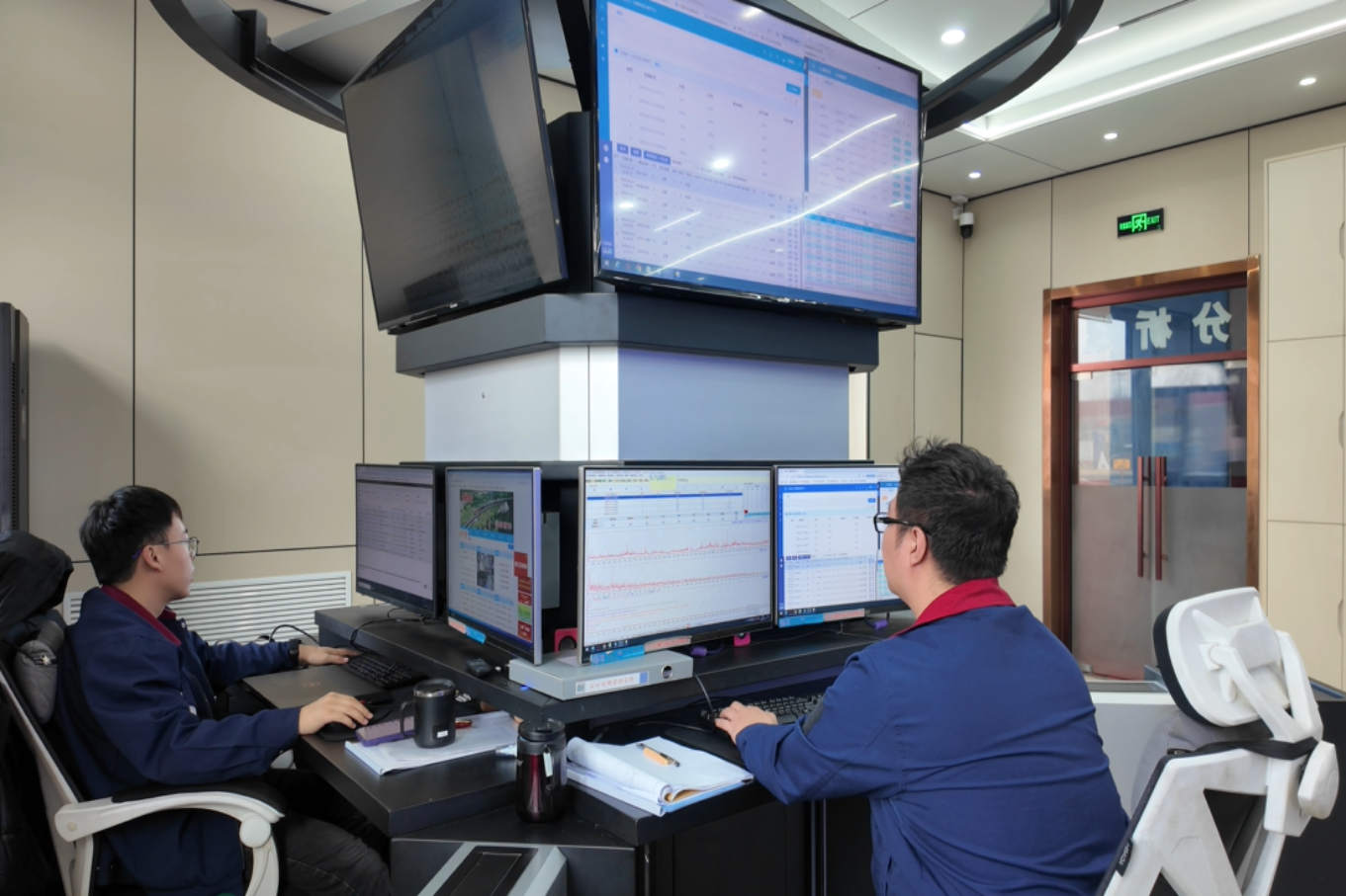 (大板机务段检修车间职工对机车数据进行分析检查。田得人 摄)