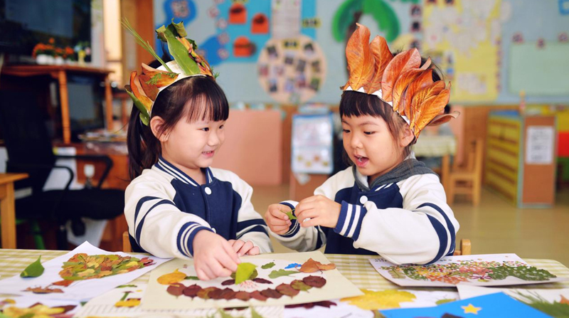 山东青岛:秋叶作画迎霜降