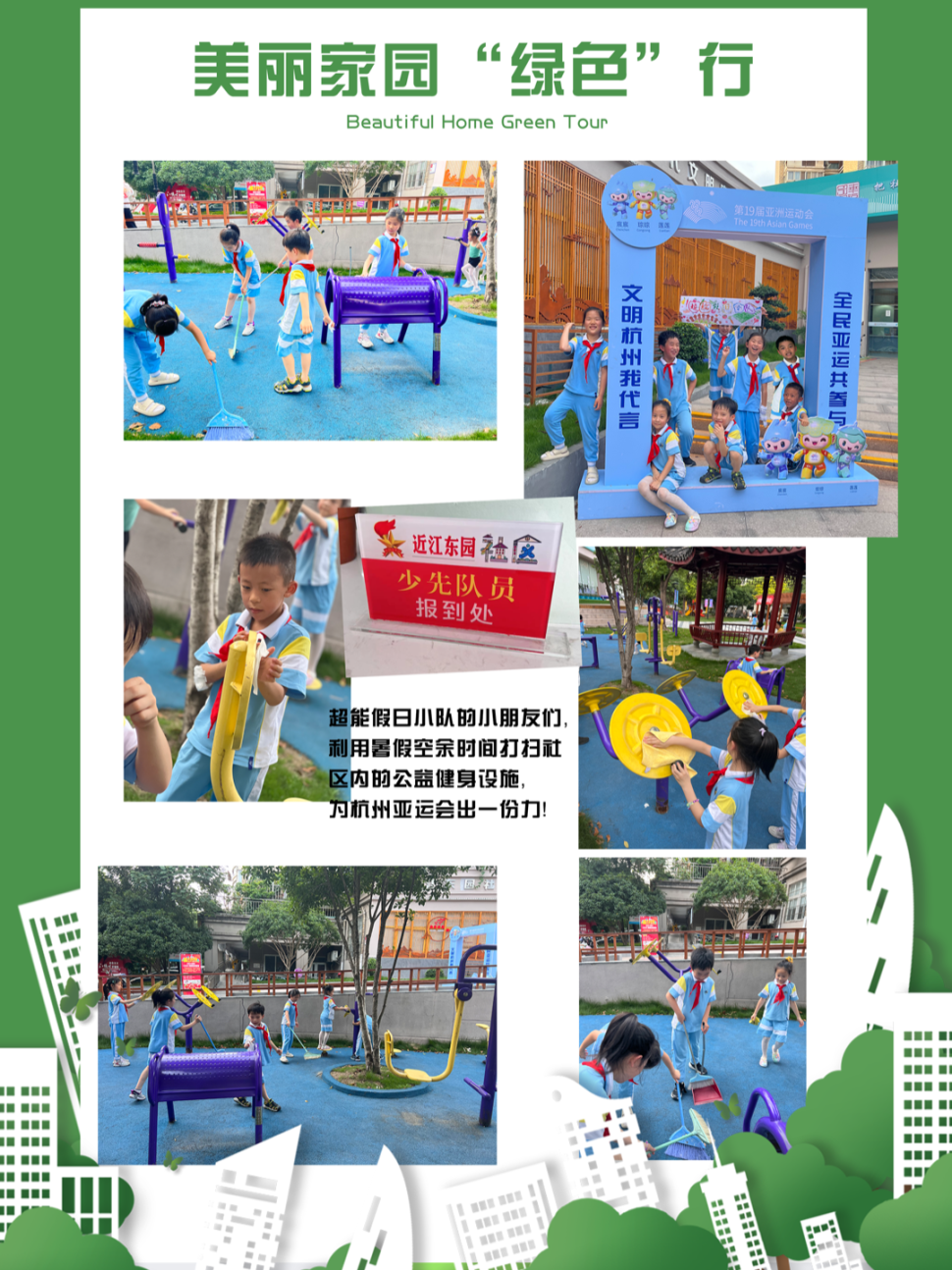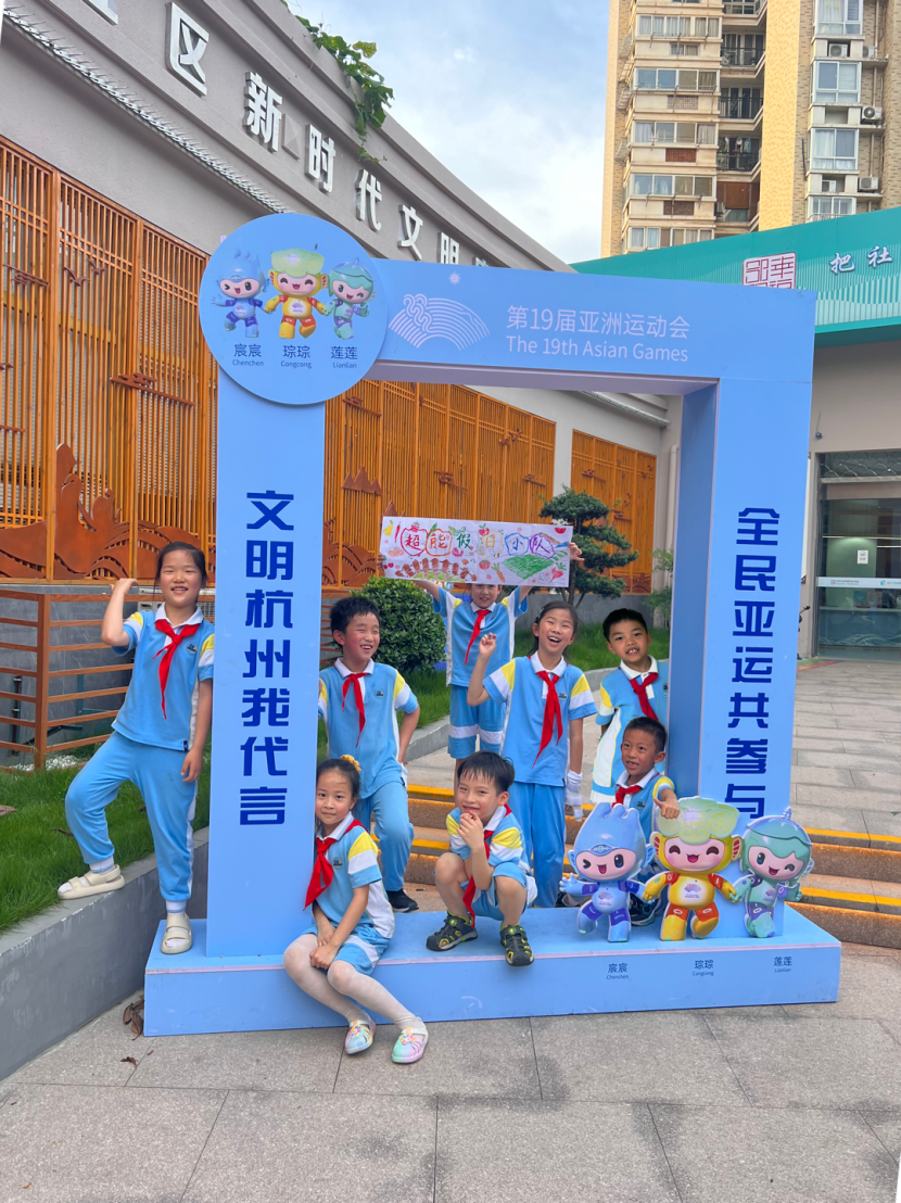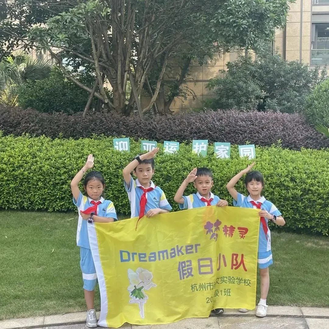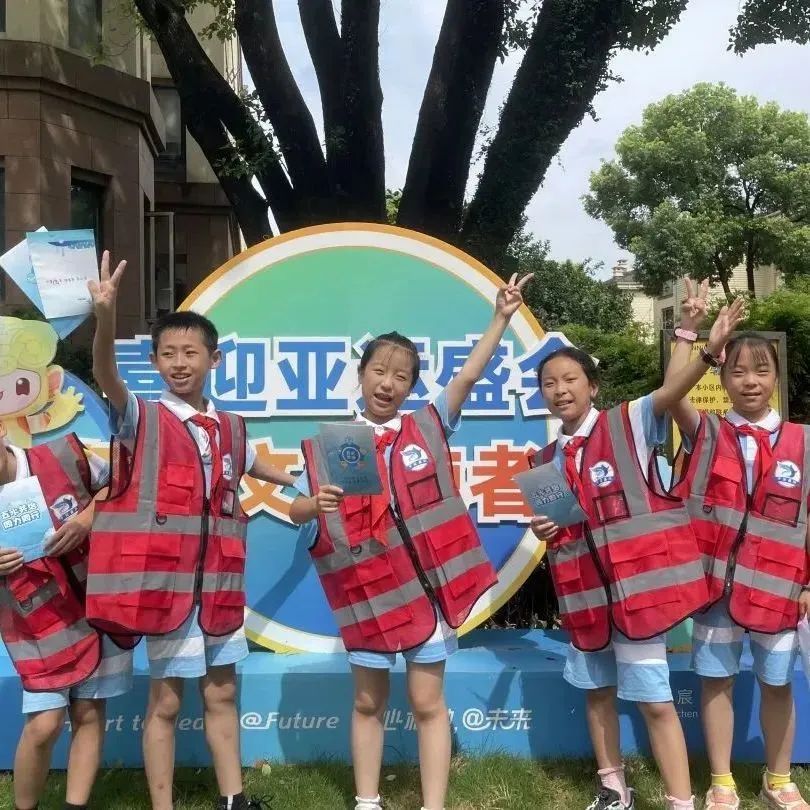 浓浓的亚运氛围怎么能少得了红领巾的身影,瞧,崇文的少先队员们以小队的形式助力绿色亚运!